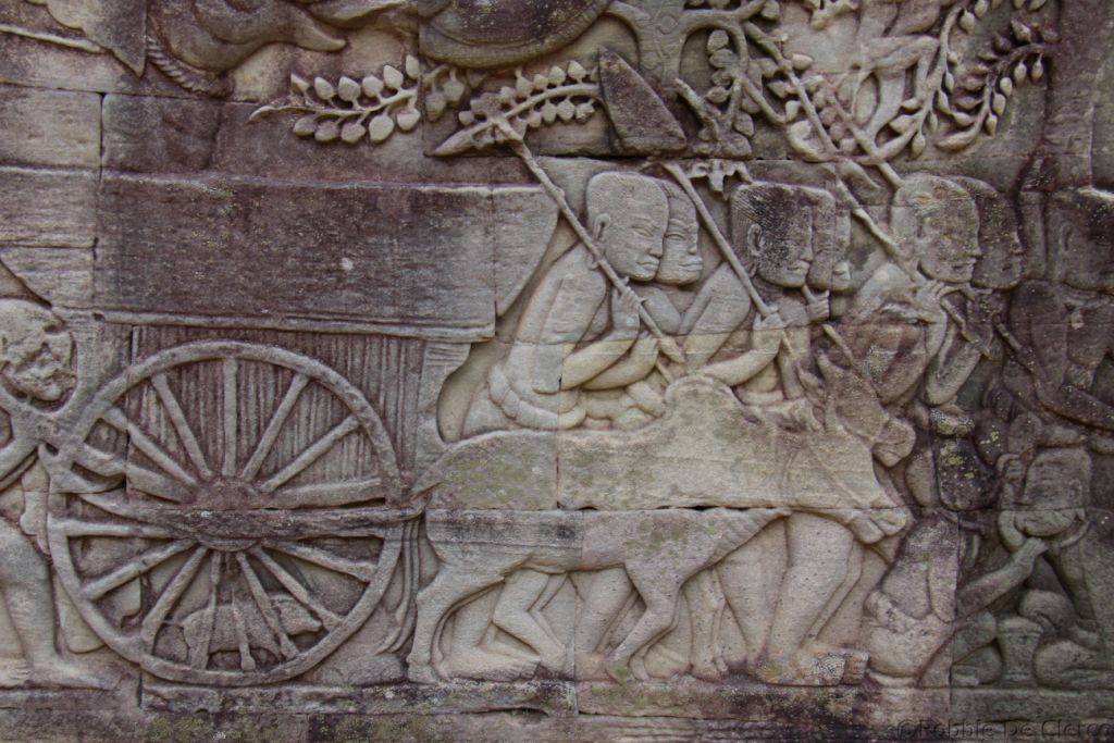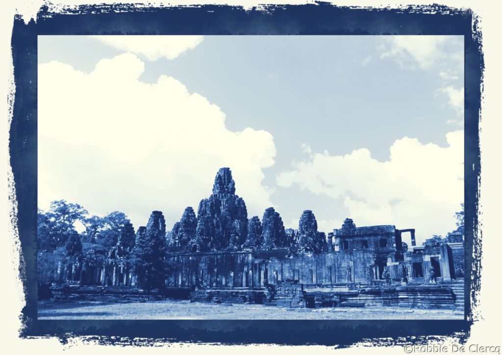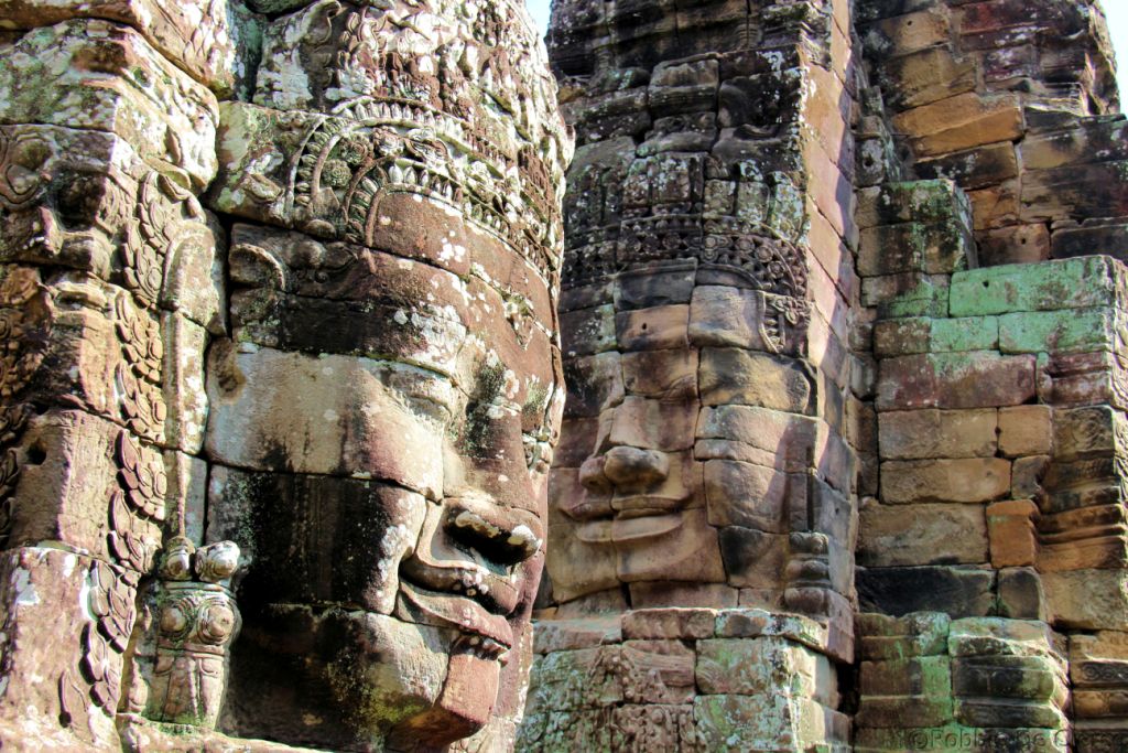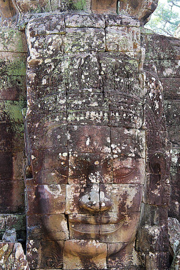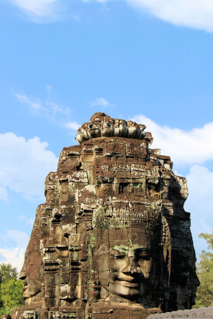 De Bayon is een rijk versierde Khmer-tempel, gebouwd in de late 12e en vroege 13e eeuw als de officiële staatstempel van de Mahayana-Boeddhistische Koning Jayavarman VII. De Bayon staat in het centrum van de voormalige hoofdstad van Jayavarman, Angkor Thom . Na de dood van Jayavarman werd het complex gewijzigd en aangevuld door latere hindoeïstische en Theravada-Boeddhistische koningen in overeenstemming met hun eigen religieuze voorkeuren . Het meest opvallende kenmerk van de Bayon is de verzameling van serene en massieve stenen gezichten op de vele torens die uitsteken vanaf het bovenste terras rond de centrale piek. De tempel is ook bekend om twee indrukwekkende sets van bas-reliëfs, die een ongebruikelijke combinatie van mythologische, historische en alledaagse taferelen presenteren .