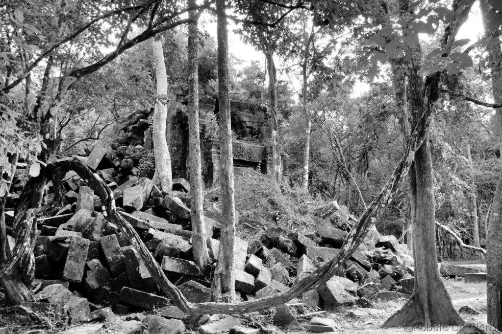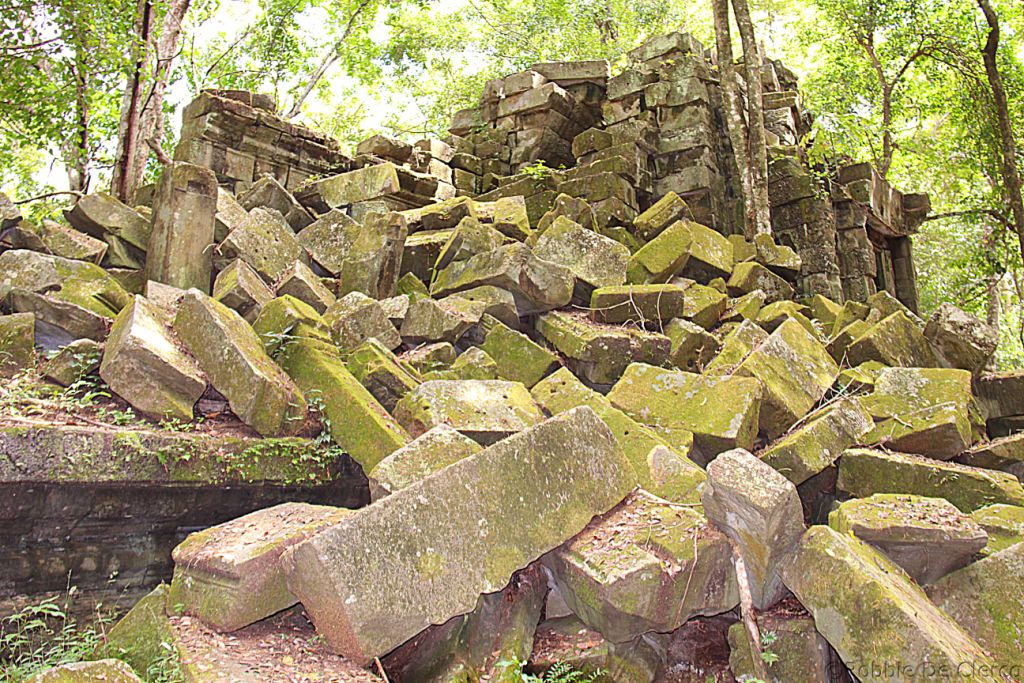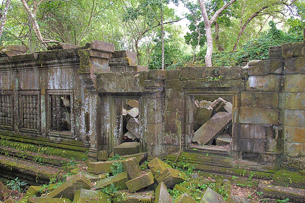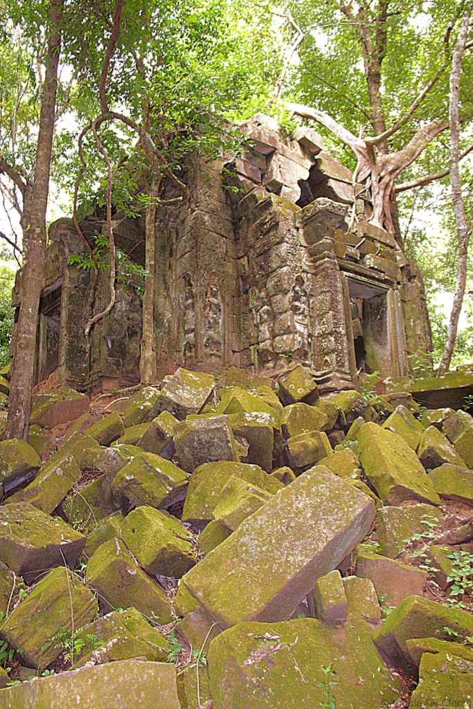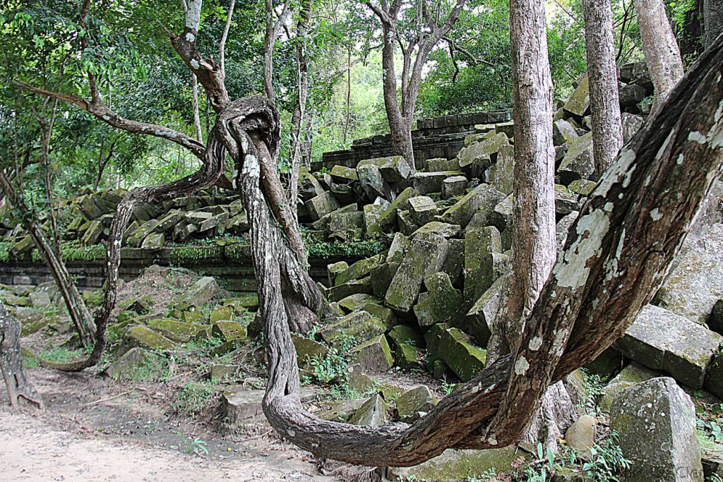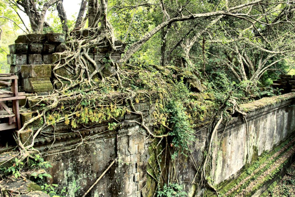 Beng Mealea is een van de meest mysterieuze tempels van Angkor, omdat de natuur er volledig vrij spel gekregen heeft. Deze tempel, gebouwd volgens dezelfde plattegrond als Angkor Wat, is Angkor’s ultieme Indiana Jones-ervaring. Beng Mealea, gebouwd in de 12e eeuw onder Suryavarman II, is omsloten door een enorme gracht van 1.2 km op 900m , waarvan vandaag de dag een groot deel is opgedroogd. De tempel was ooit volledig overwoekerd door de jungle maar in de afgelopen jaren is er werk van gemaakt om toeristen de kans te geven de tempel te bezoeken. Na het binnenkomen moeten bezoekers zich een weg banen tussen stapels gigantische stenen, door lange donkere kamers en over enorme boomwortels om tot aan de centrale toren te komen, die volledig is ingestort . Verstopt tussen het puin en het gebladerte zijn verschillende indrukwekkende houtsnijwerken, evenals een goed bewaard gebleven bibliotheek.