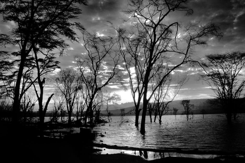 Lake Nakuru National Park was created in 1961 around Lake Nakuru. It is best known for its thousands, sometimes millions of flamingos nesting along the shores. The surface of the shallow lake is often hardly recognizable due to the continually shifting mass of pink. The number of flamingos on the lake varies with water and food conditions. Also of interest is an area of 188 km² around the lake fenced off as a sanctuary to protect Rothschild giraffes, black rhinos and white rhinos.