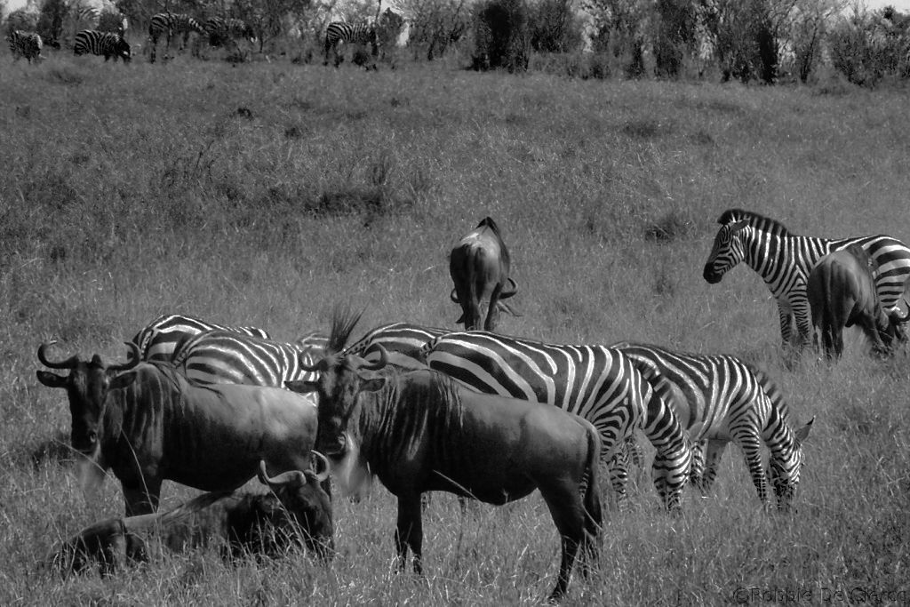 The Masai Mara National Reserve is a large game reserve in Kenya, contiguous with the Serengeti National Park in Tanzania. It is named in honor of the Maasai people (the ancestral inhabitants of the area) and their description of the area when looked at from afar: “Mara,” which is Maa (Maasai language) for “spotted,” an apt description for the circles of trees, scrub, savanna, and cloud shadows that mark the area. It is globally famous for its exceptional population of lions, leopards and cheetahs, and the annual migration of zebra, Thomson’s gazelle, and wildebeest to and from the Serengeti every year from July to October, known as the Great Migration.