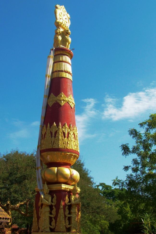 The Dhamma Ya Zi Ka Pagoda is a Buddhist temple and was built in 1196 during the reign of King Narapatisithu. The pagoda is circular in design and is made of brick. Its three terraces contain terra cotta tiles illustrating scenes from the Jataka (literature native to India concerning the previous births of the Buddha).