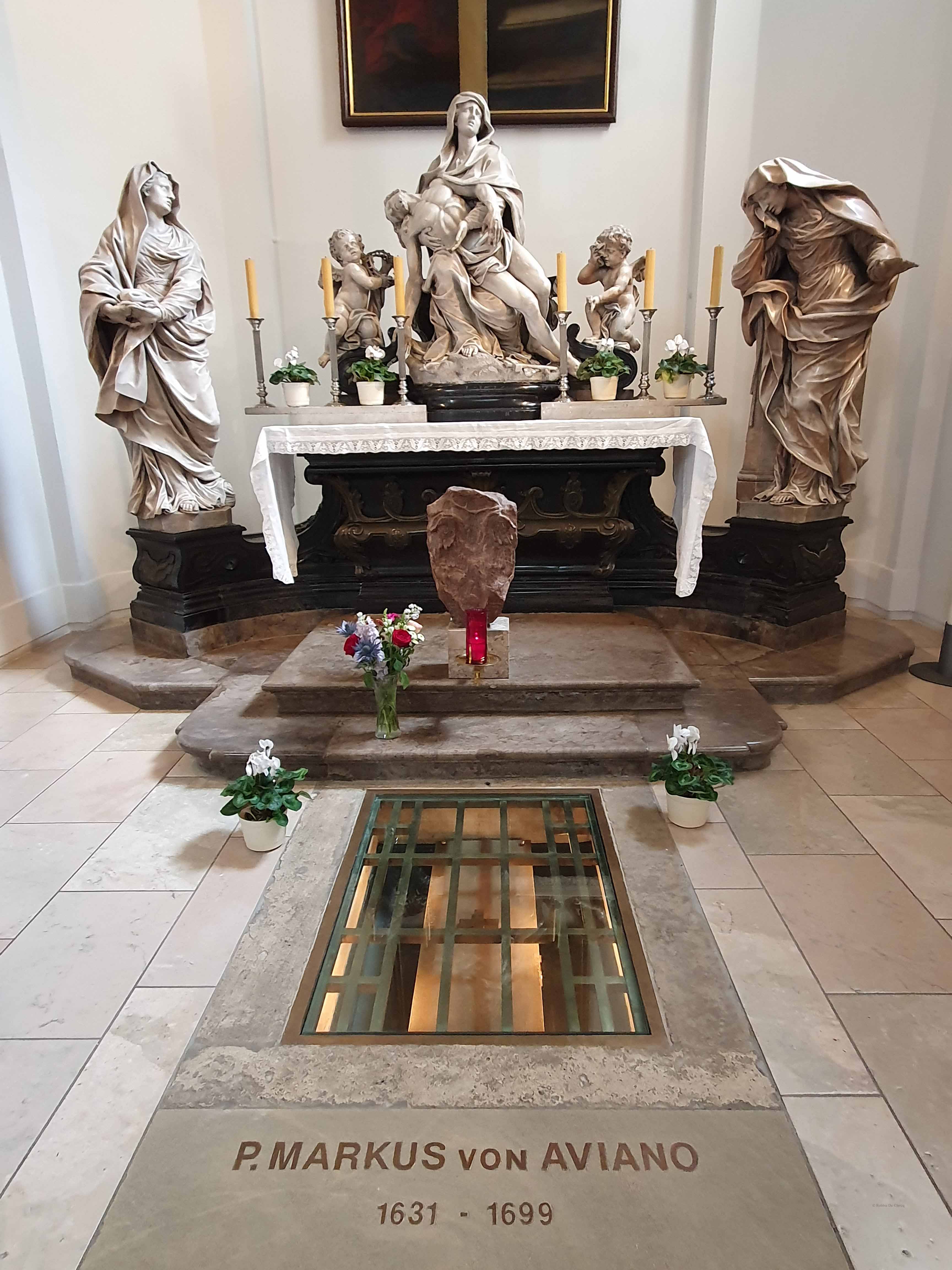 De Kapucijnenkerk in Wenen, Oostenrijk is een kerk en klooster gerund door de Orde van de Minderbroeders Kapucijnen. Gelegen aan het Neuer Markt-plein in de Innere Stadt, in de buurt van het Hofburg-paleis, de kapucijnerkerk die het meest bekend staat om het bevatten van de keizerlijke crypte, de laatste rustplaats voor leden van het huis van Habsburg. De officiële naam van de kerk is de kerk van de Heilige Maria van de Engelen, maar in Wenen staat hij algemeen bekend als de kapucijnerkerk. Rond 1599 woonden de gebroeders Kapucijner onder Lawrence van Brindisi in Wenen op weg naar Praag, waar ze in de loop van de contrareformatie door paus Clemens VIII waren gestuurd. De kerk werd geschonken door een testament van Anna van Tirol (1585 – 1618), gemalin van de Heilige Roomse keizer Matthias van Habsburg. De bouw werd vertraagd door het uitbreken van de Dertigjarige Oorlog en werd pas in 1632 voltooid onder het bewind van Matthias ‘opvolger Ferdinand II. Het werd ingewijd in 1632. De kerk bevat de graven van monnik Marco d’Aviano (overleden 1699) en architect Donato Felice d’Allio (1761), evenals een pietà van Peter Strudel. Het ondergrondse mausoleum is de keizerlijke crypte (Kaisergruft, hoewel hij gewoonlijk kapucijner Crypt, Kapuzinergruft wordt genoemd), die de belangrijkste begraafplaats was voor de Habsburgse dynastie, keizers van het Heilige Roomse Rijk en hun afstammelingen.