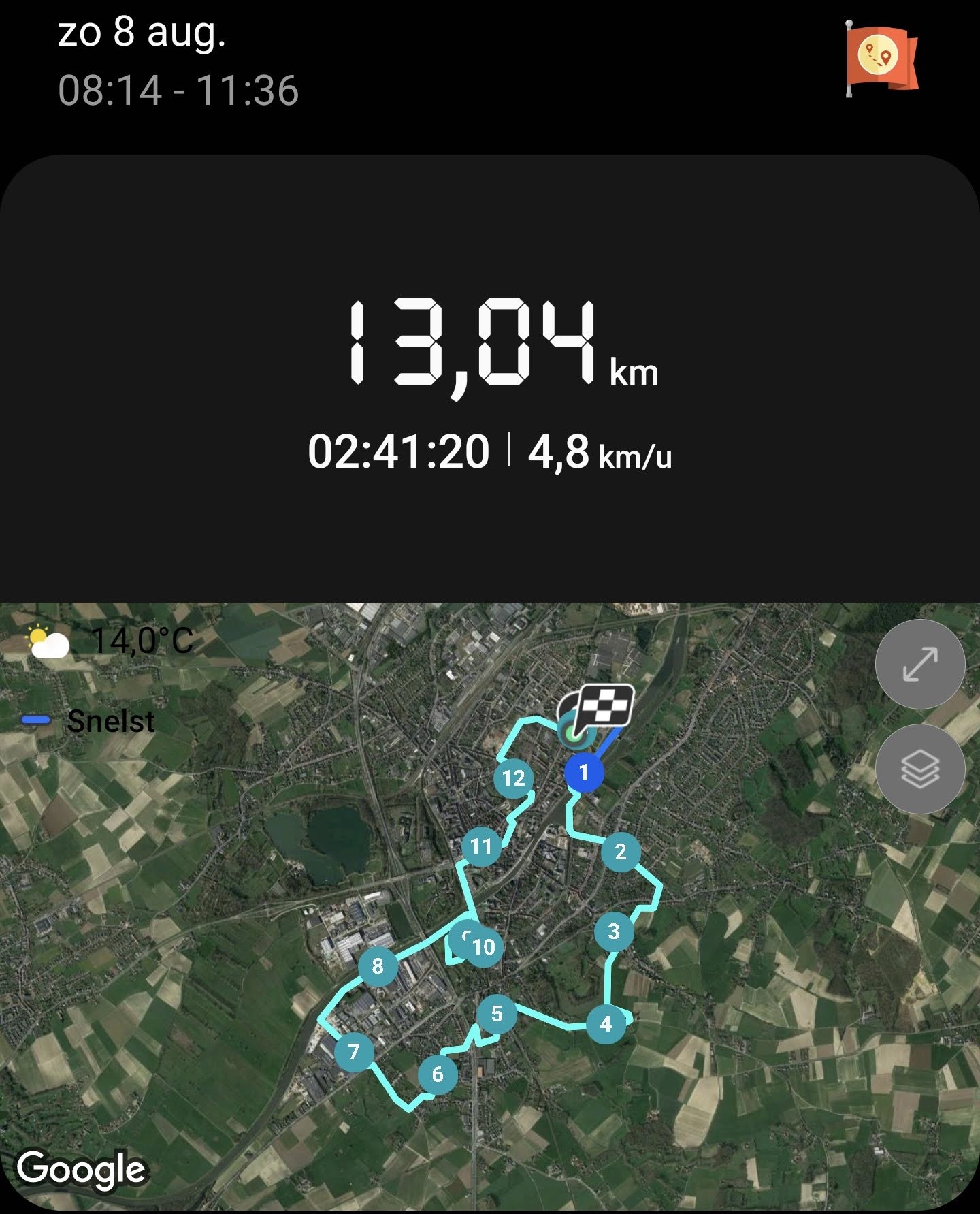 - Afstand: 13,04 km