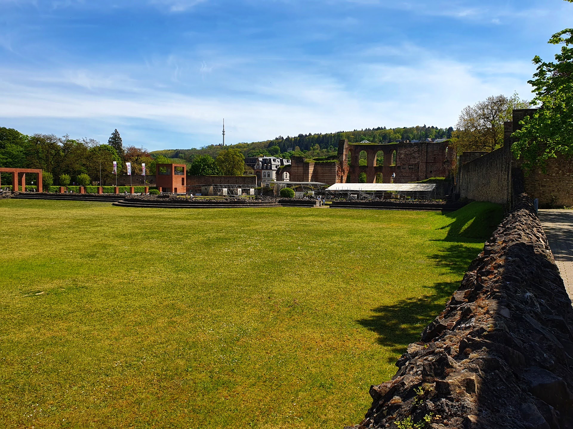 Zijn opvolger, keizer Valentinianus I, begon na 360 met de voltooiing van het complex in een kleinere versie dan oorspronkelijk gepland was, en liet het koud- en lauwwaterbad verwijderen. Hier werd een hal van gemaakt, bedoeld voor ontvangsten en parades. In de middeleeuwen deed het gebouw dienst als deel van de stadsmuur.