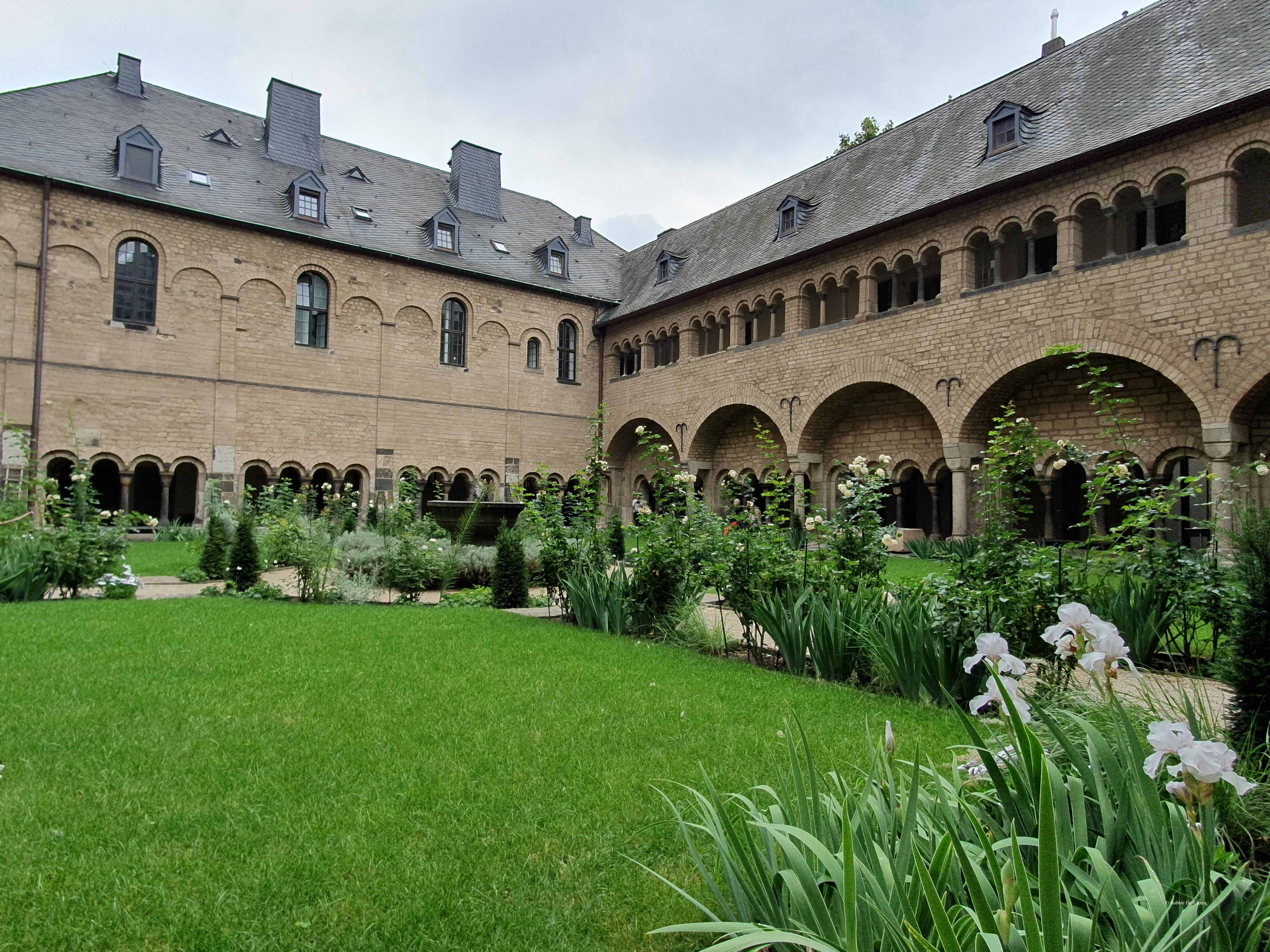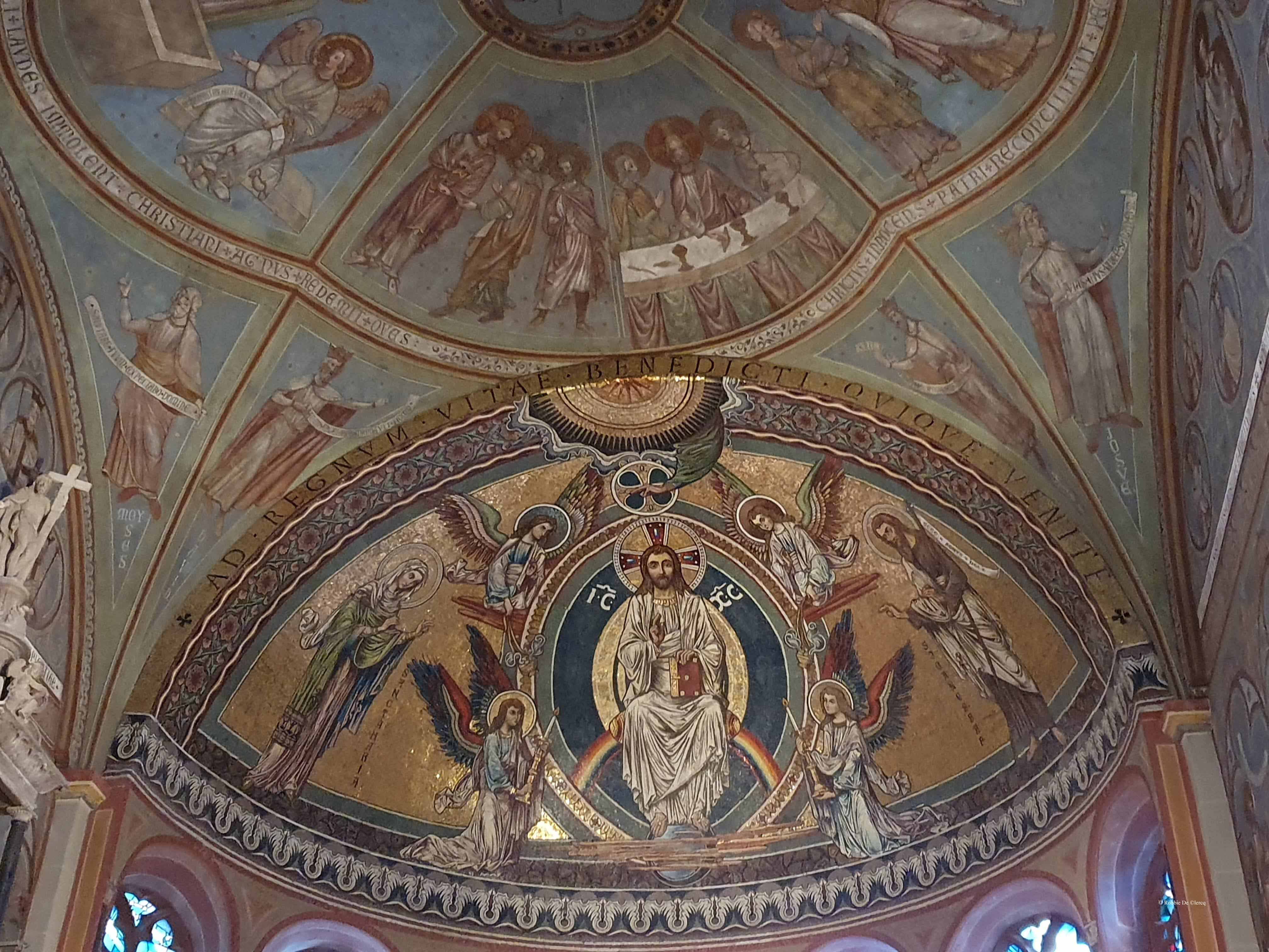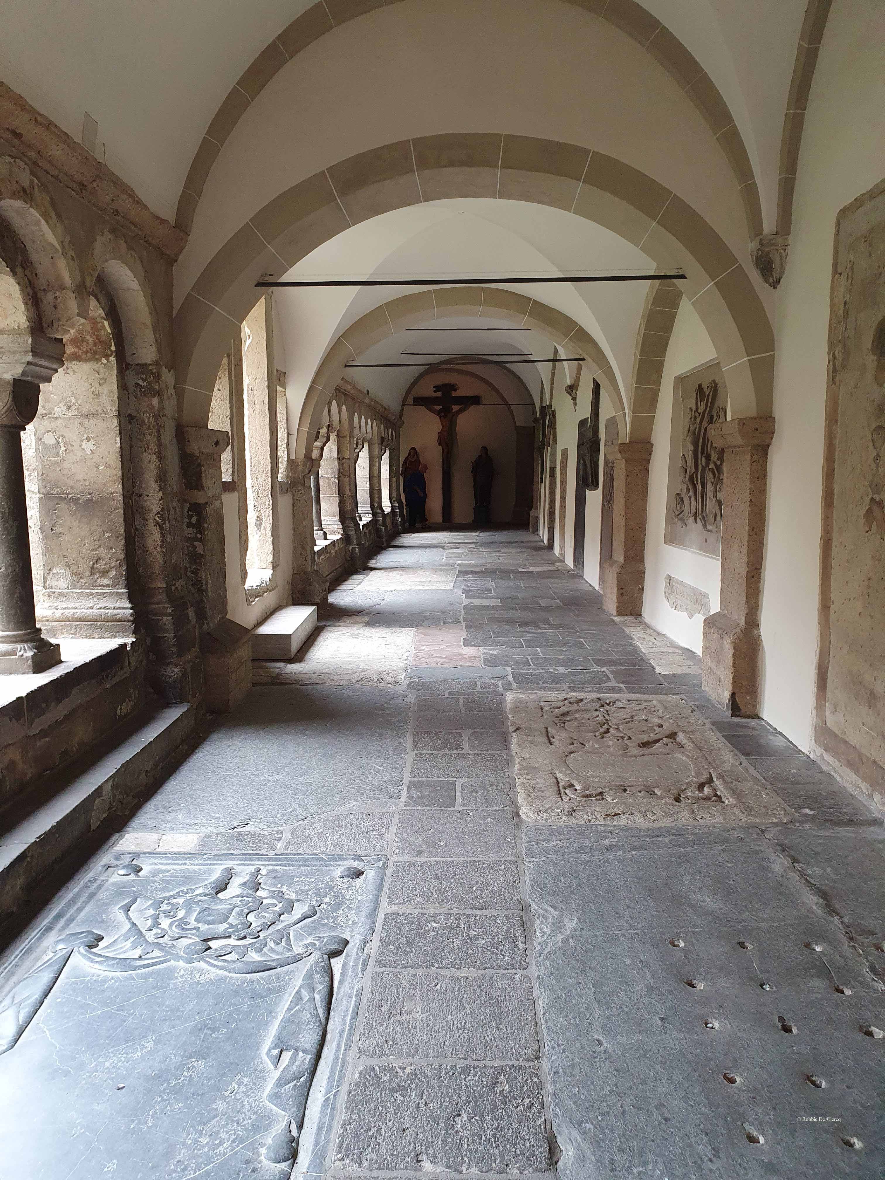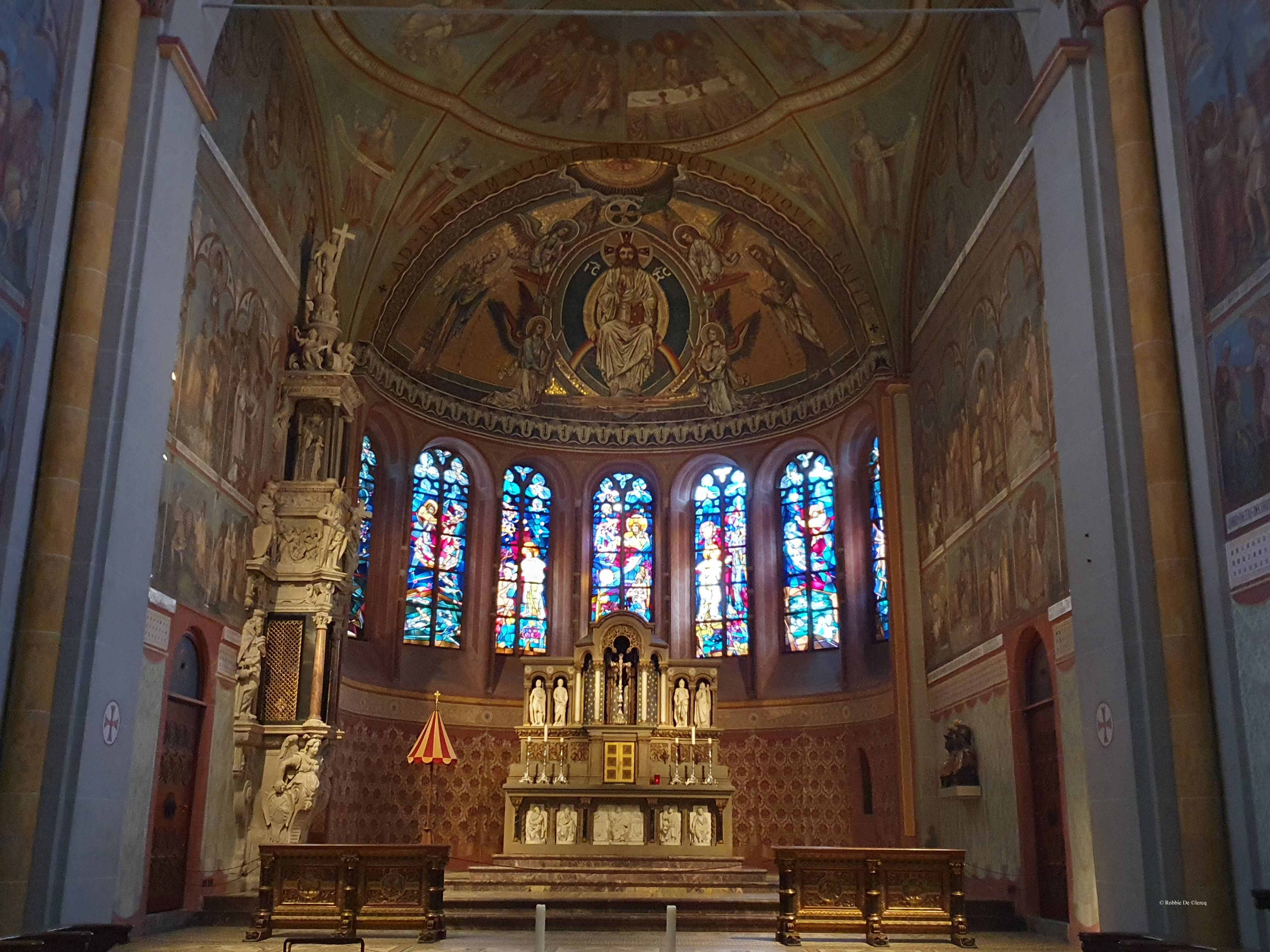 Het dwarsschip was amper breder dan het schip. De basiliek had een dubbel koor; een lang koor over een driebeukige crypte in het oosten waaronder zich een grafkelder bevond en een westelijk koor waaronder zich eveneens een crypte bevond. Van dit 11e-eeuwse bouwwerk zijn slechts de grafkelder, delen van de oostelijke crypte, het oostkoor en het westelijke deel behouden. In de grafkelder bevinden zich drie stenen sarcofagen en een met bakstenen ommuurd graf.