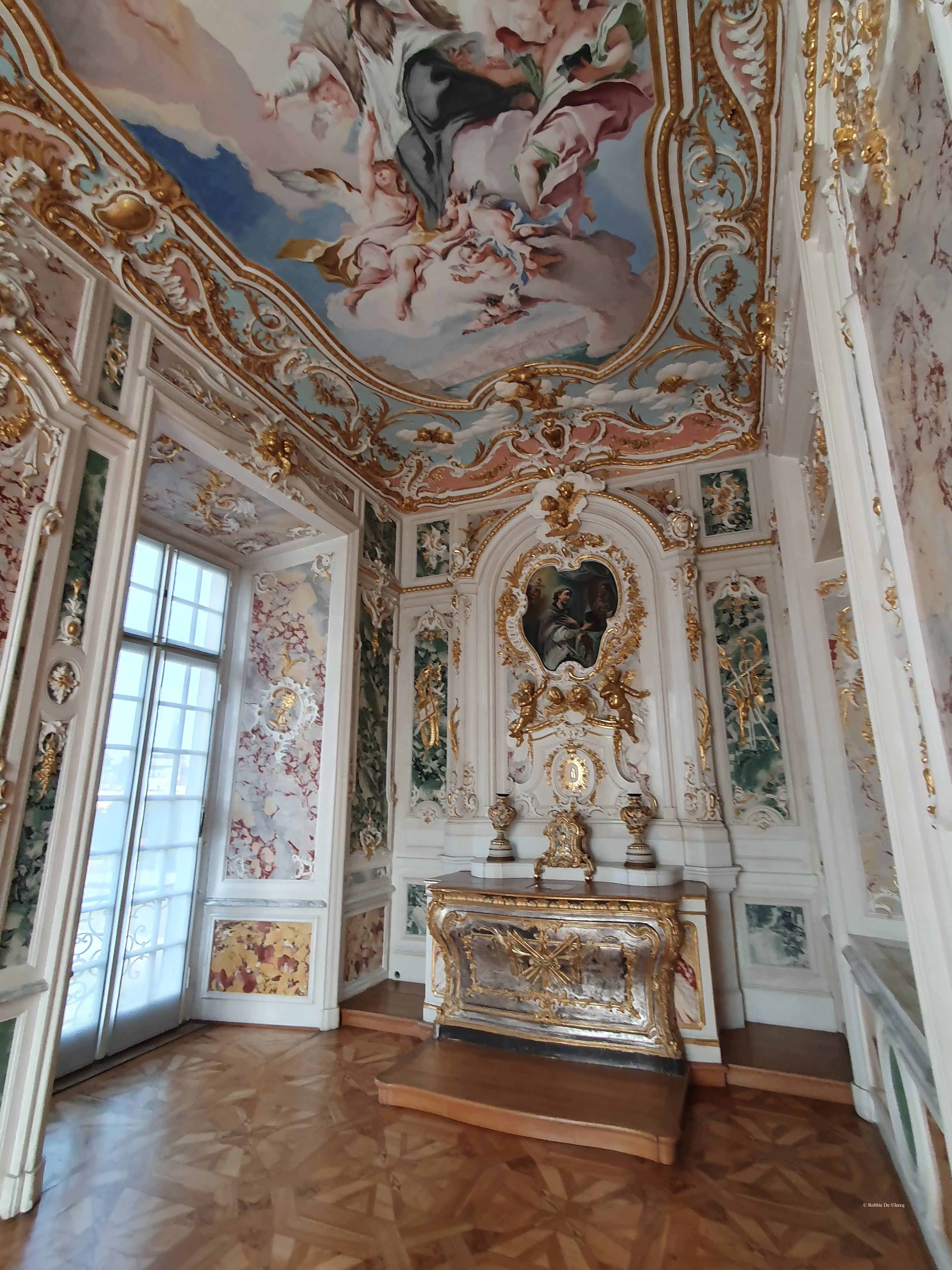 Het slot Augustusburg werd aan het begin van de achttiende eeuw gebouwd in opdracht van Clemens August I van Beieren, de keurvorst van Keulen. De belangrijkste architecten waren Johann Conrad Schlaun en François de Cuvilliés. Het gebouw heeft een schitterende staatsietrap ontworpen door Balthasar Neumann. Clemens August liet Renier Roidkin in de periode 1733-1737 ongeveer tweehonderd vedute tekenen, die gebruikt werden als decoratie van het complex.