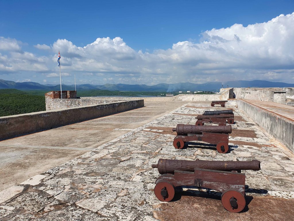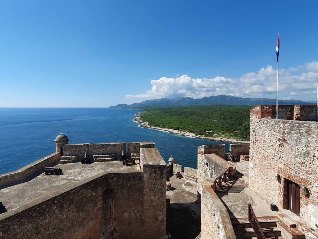 De laatste stop op onze stadstour was het Castillo de San Pedro de la Roca, een fort zes kilometer buiten de stad Santiago de Cuba. Het is ontworpen door Battista Antonelli, die in opdracht van de toenmalige gouverneur van de stad een verdedigingswerk moest ontwerpen tegen piraten.