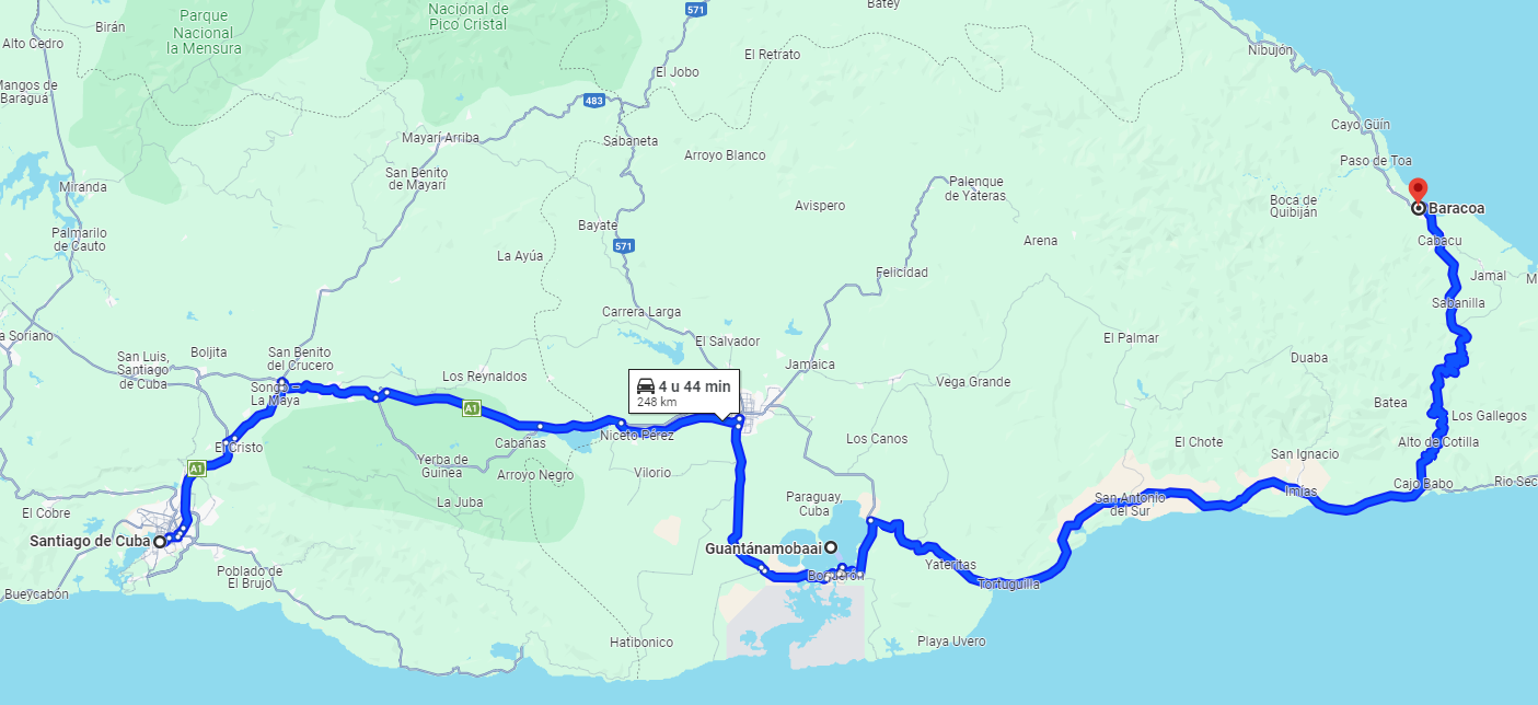 Een rit van ongeveer 250 kilometer bracht ons van Santiago de Cuba via Guantanamo Bay naar hotel Porto Santo in Baracoa.