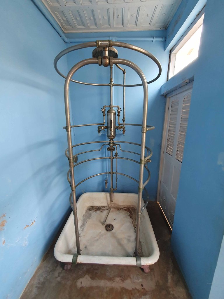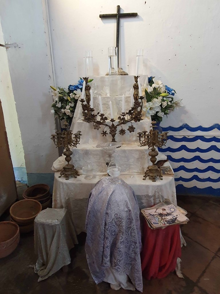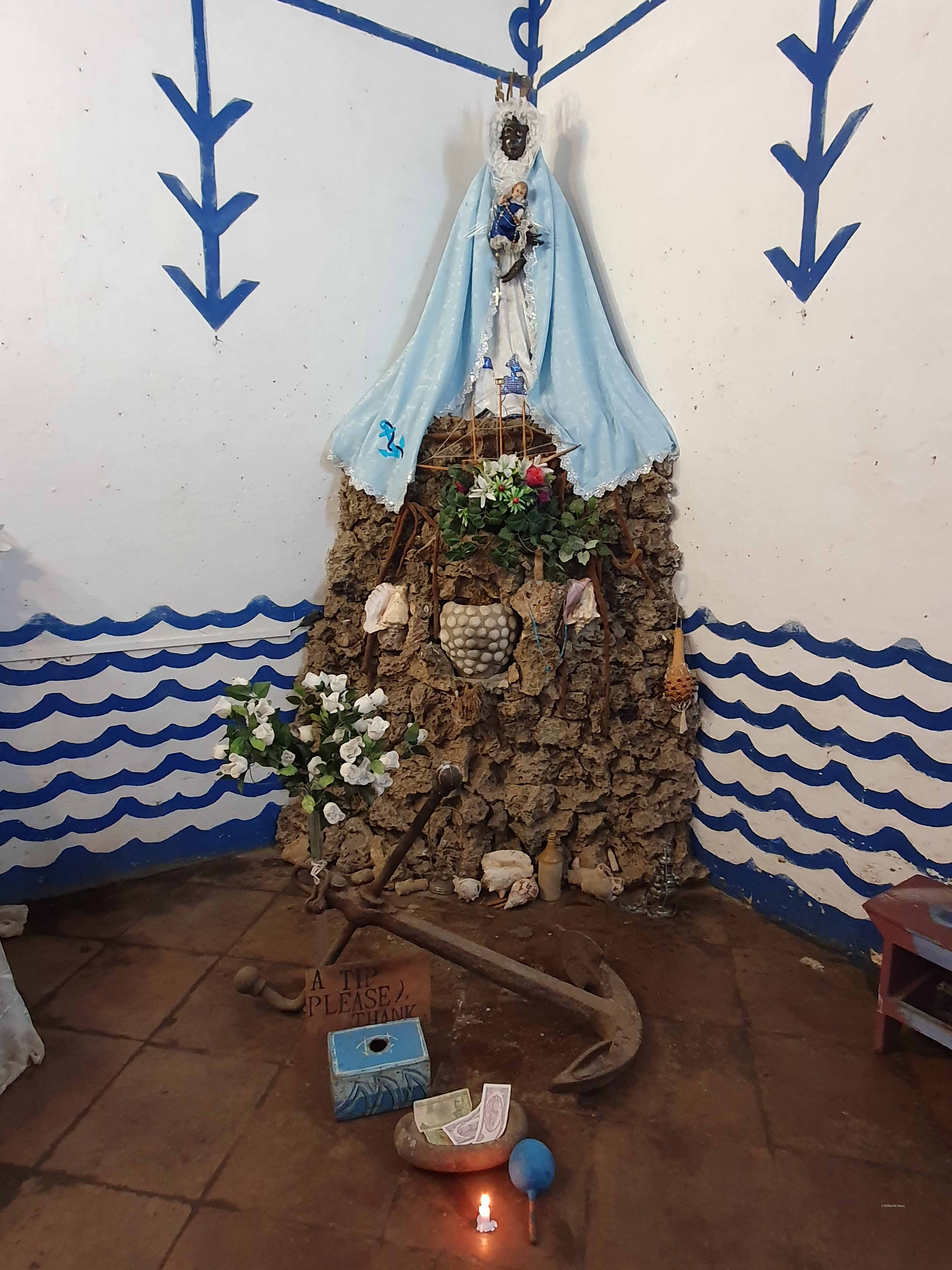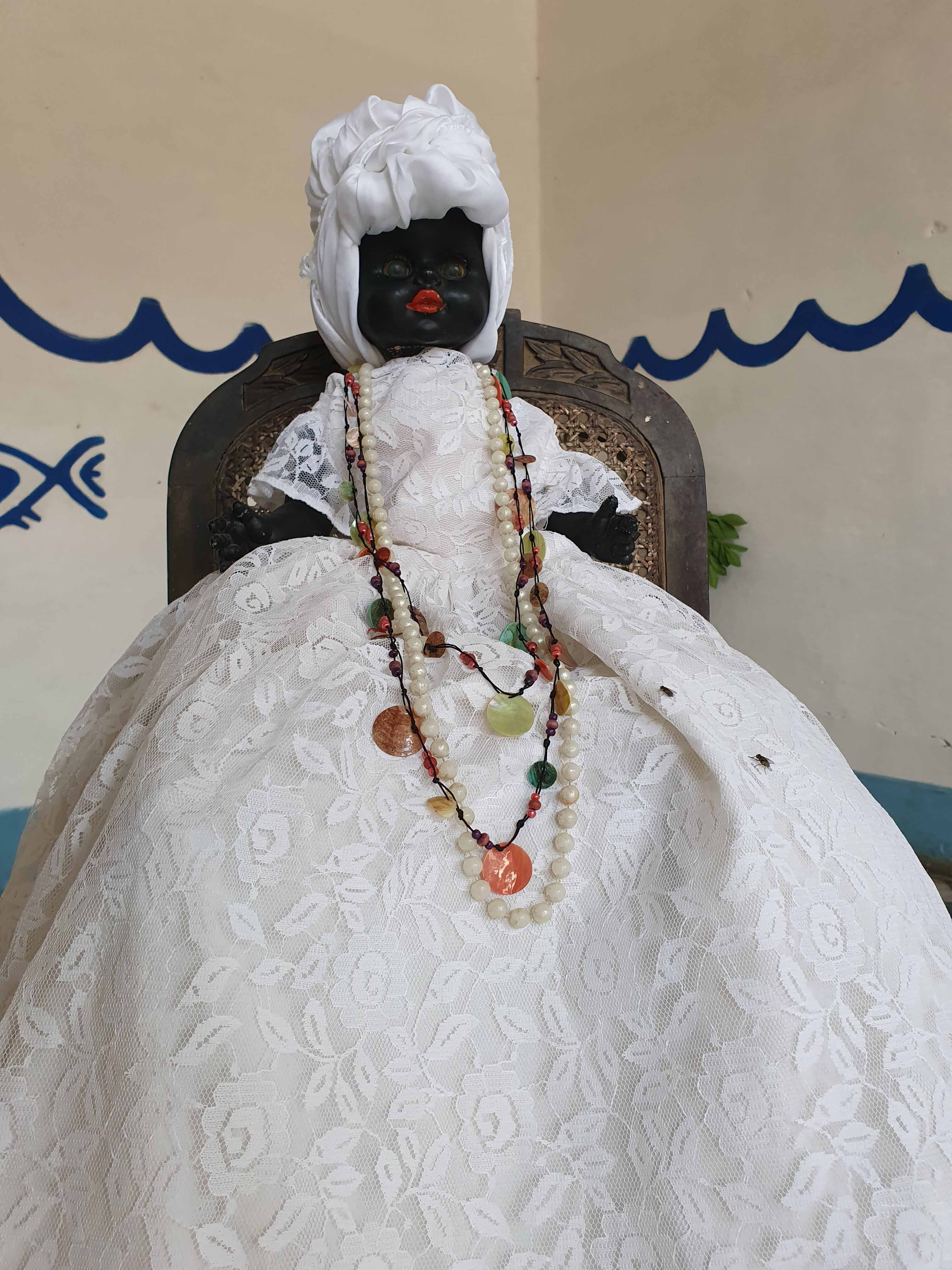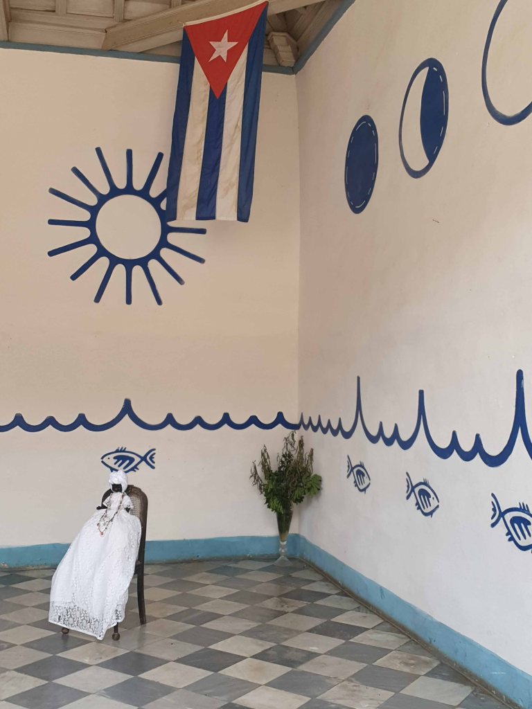 De eerste stop tijdens onze stadswandeling bracht ons naar de Templo Yemayá, gevestigd in een opvallend wit-blauw huis. Dit gebouw is een Santería-tempel met een altaar gewijd aan de Yemayá. Zij is de godin van de zee, vertegenwoordigd door een zwarte pop, gekleed in het wit en versierd met vissen die de ogen van Yemayá’s zoons voorstellen.