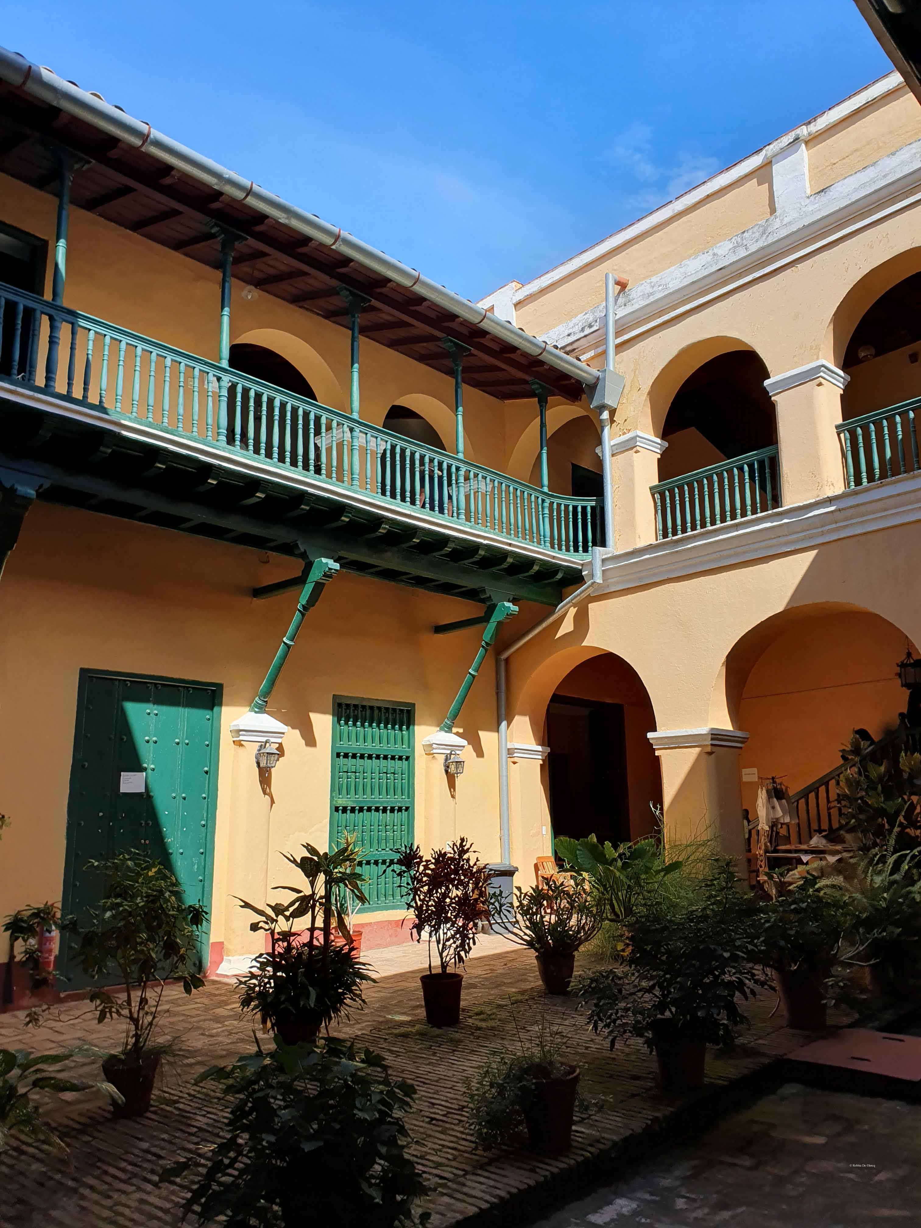 Onze verkenningstocht ging verder via het Museo de Arquitectura Colonial. Het 18e eeuwse herenhuis van de familie Sánchez Iznaga, waarin het Museum voor de Koloniale Architectuur is ondergebracht. Het gebouw bestond oorspronkelijk uit twee afzonderlijke huizen. Deze waren beiden eigendom van de suikermagnaat Saturnino Sánchez Iznaga en zijn in de 19e eeuw samengevoegd. Het museum, het enige in zijn soort op heel Cuba, behandelt de verschillende bouwkundige elementen die in Trinidad te zien zijn en illustreren de bouwtechnieken uit de koloniale periode. Er zijn diverse sloten, deurkrukken, deuren, scharnieren, ramen, traliewerk en andere gebruiksvoorwerpen te zien.