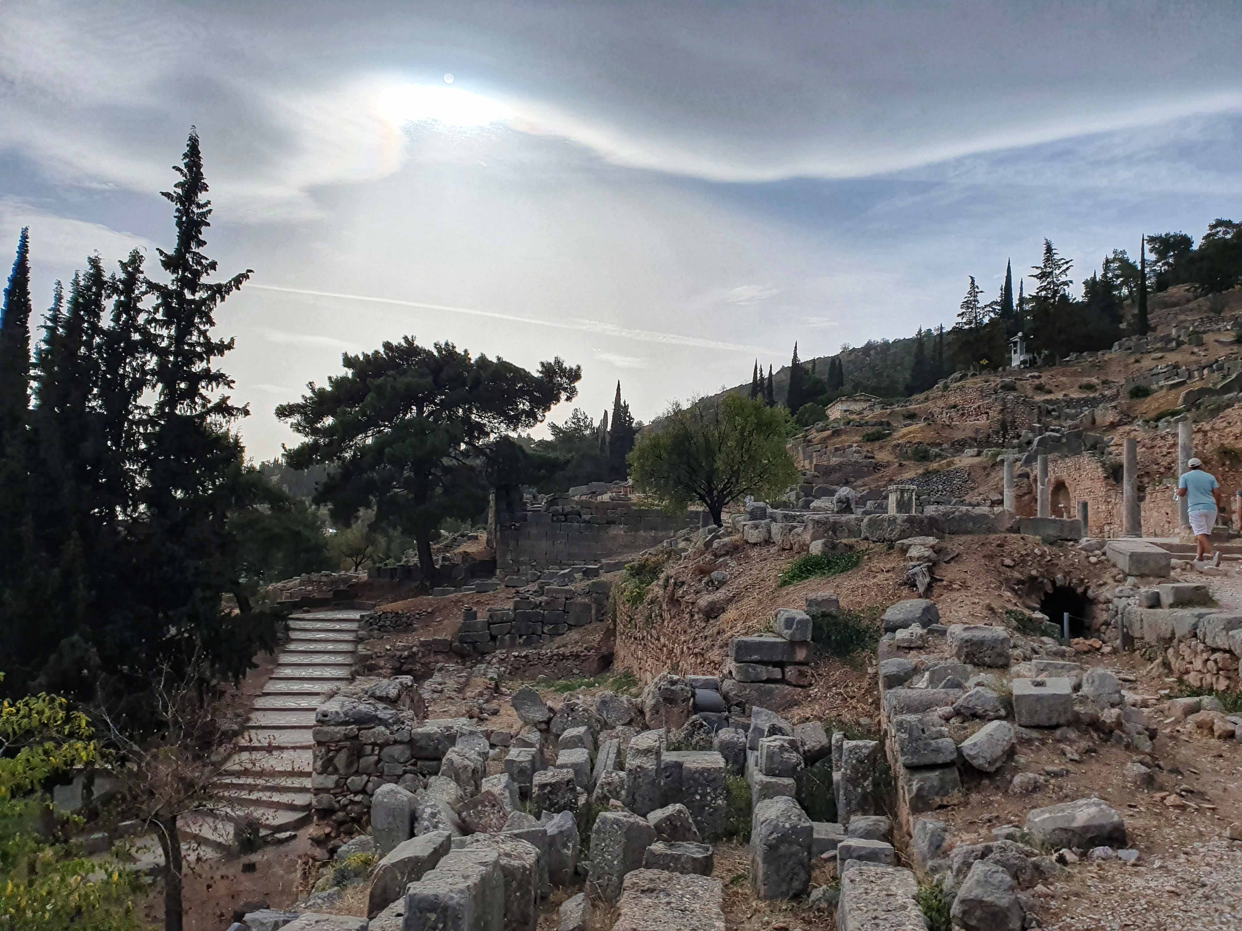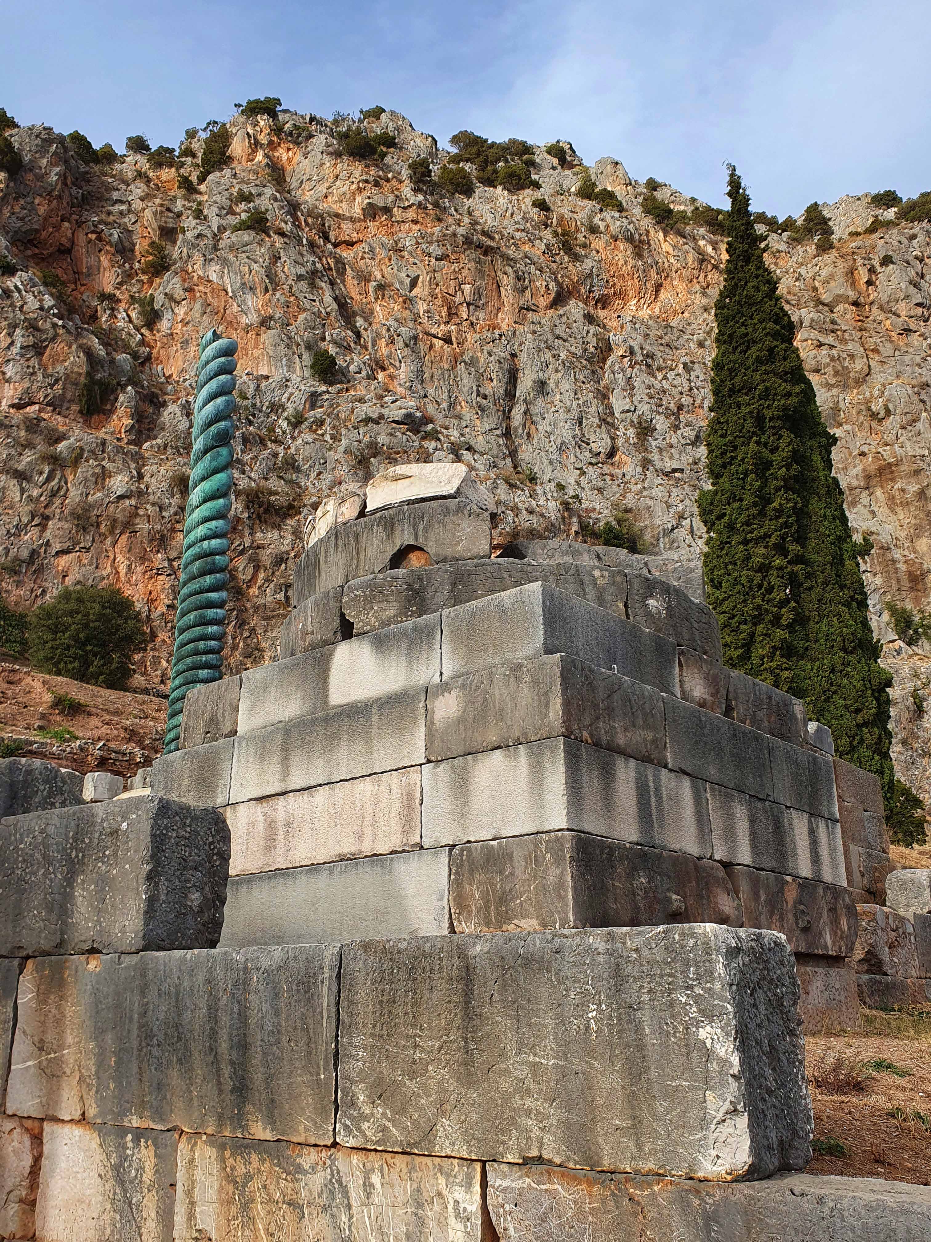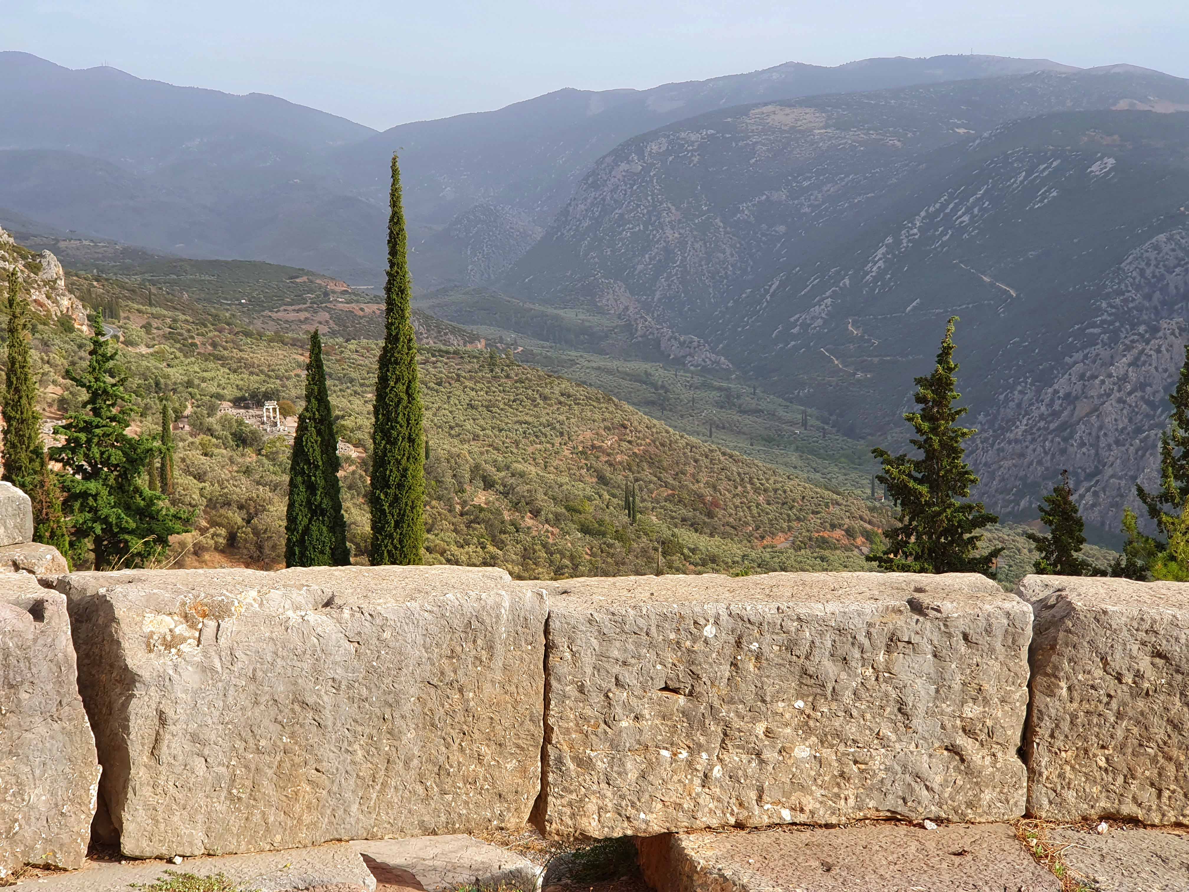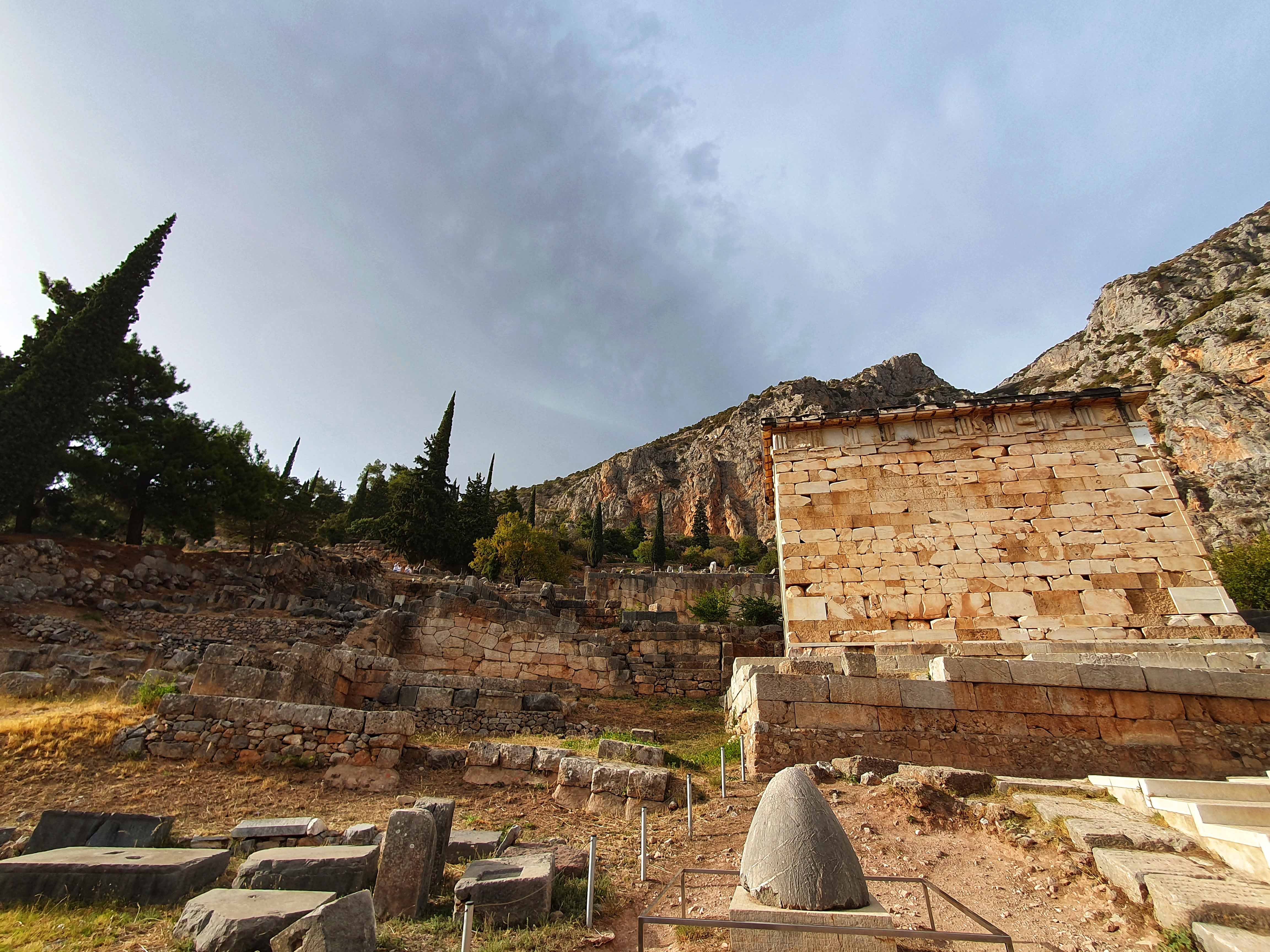 Delphi was voor de oude Grieken zowel letterlijk als figuurlijk het middelpunt, de navel, van de aarde. Volgens de mythologie liet de Griekse oppergod Zeus 2 adelaars vanuit de uithoeken van de aarde opstijgen om zo het middelpunt van zijn rijk vast te stellen. De adelaars zouden elkaar in Delphi zijn tegengekomen op de plek waar in 1913 de omphalós, de bekende navelsteen, werd gevonden.
