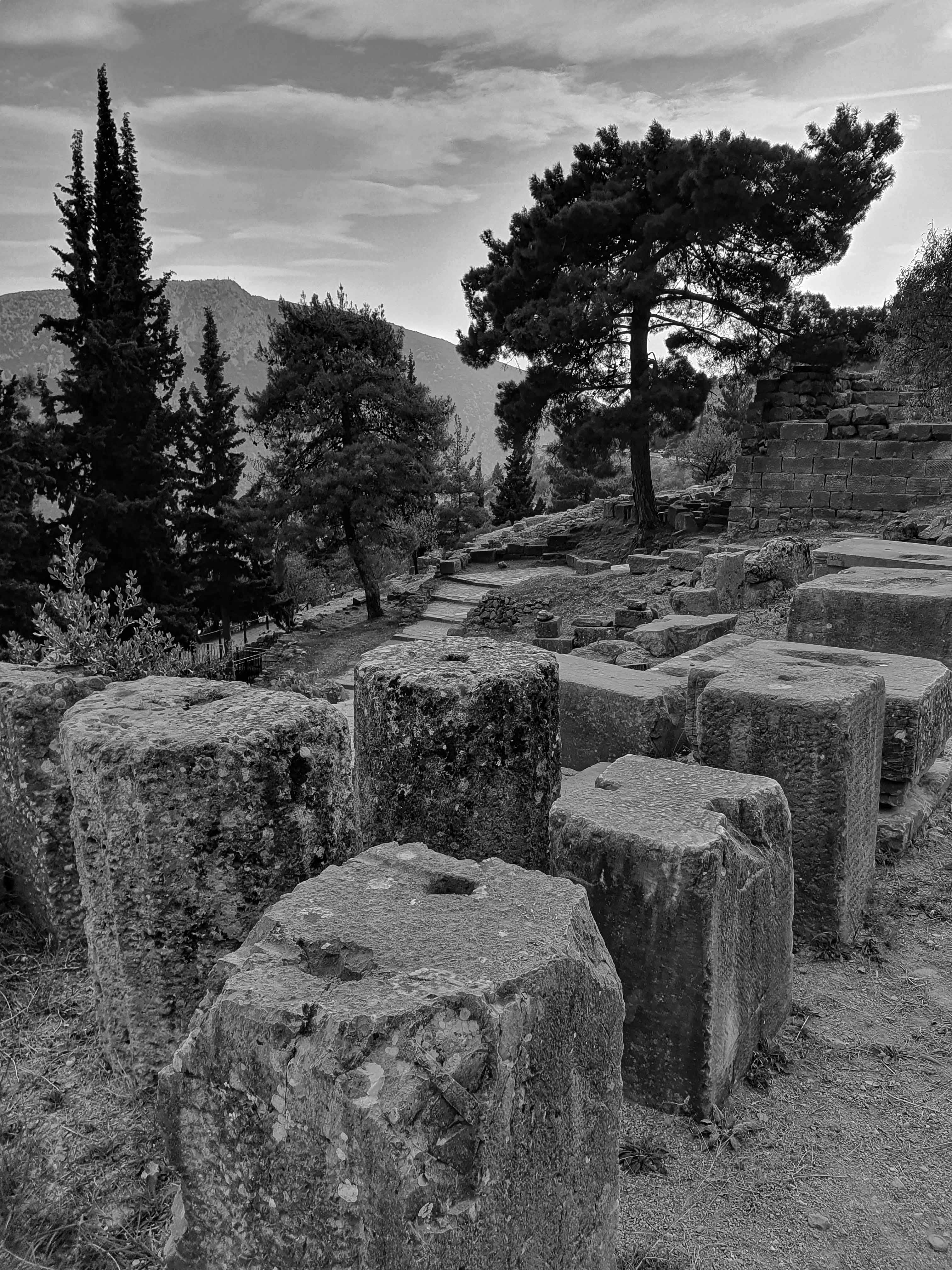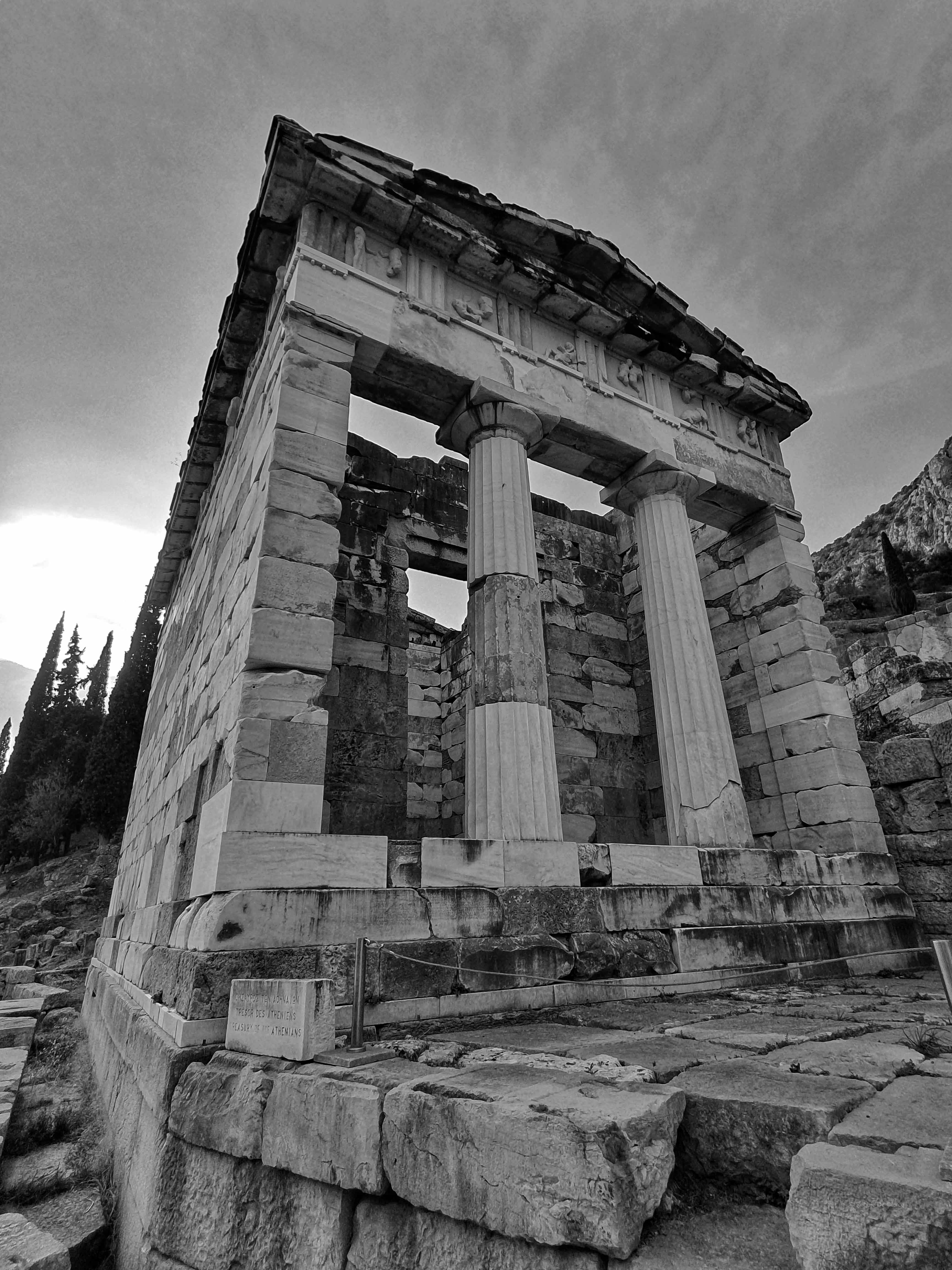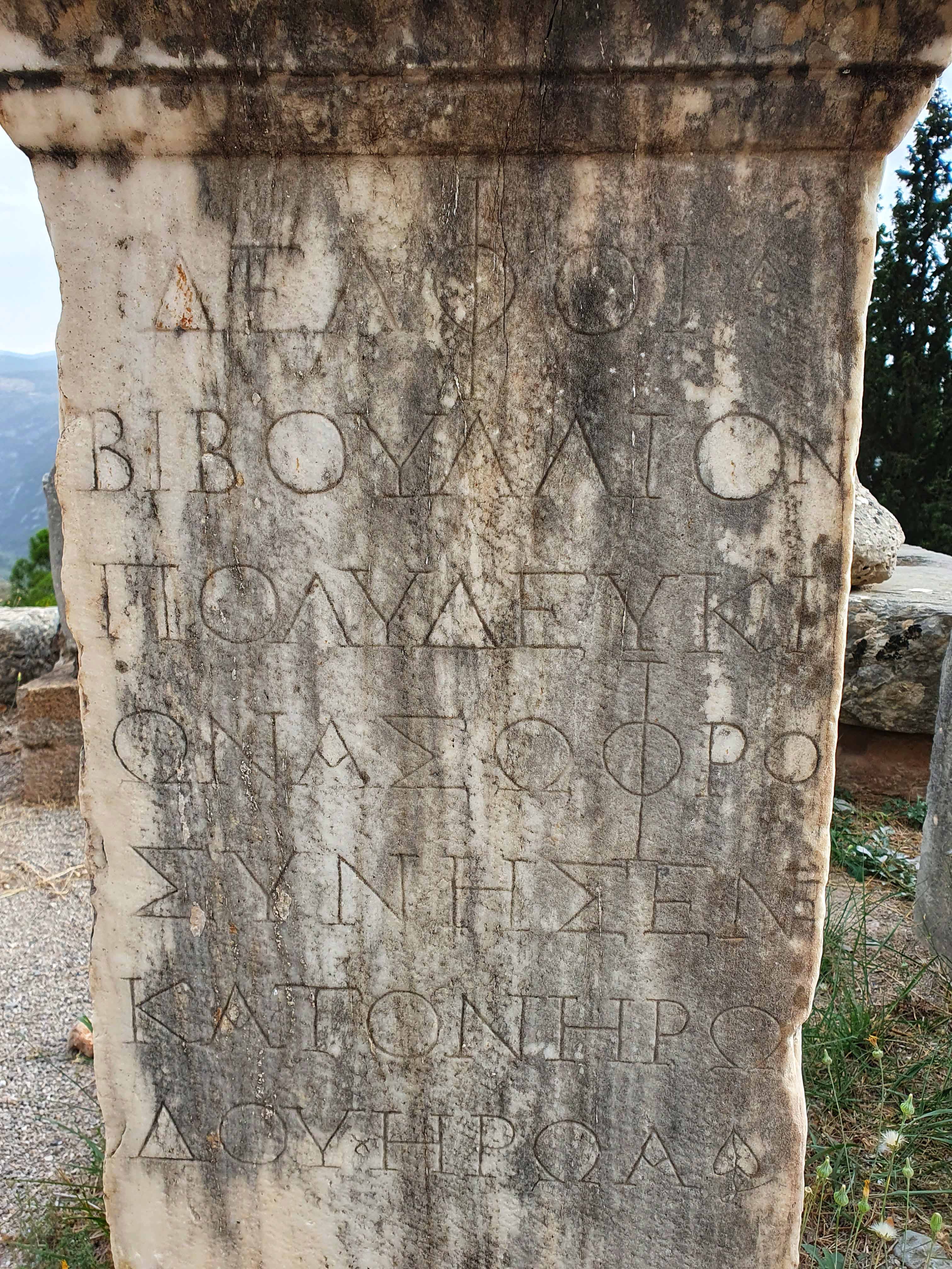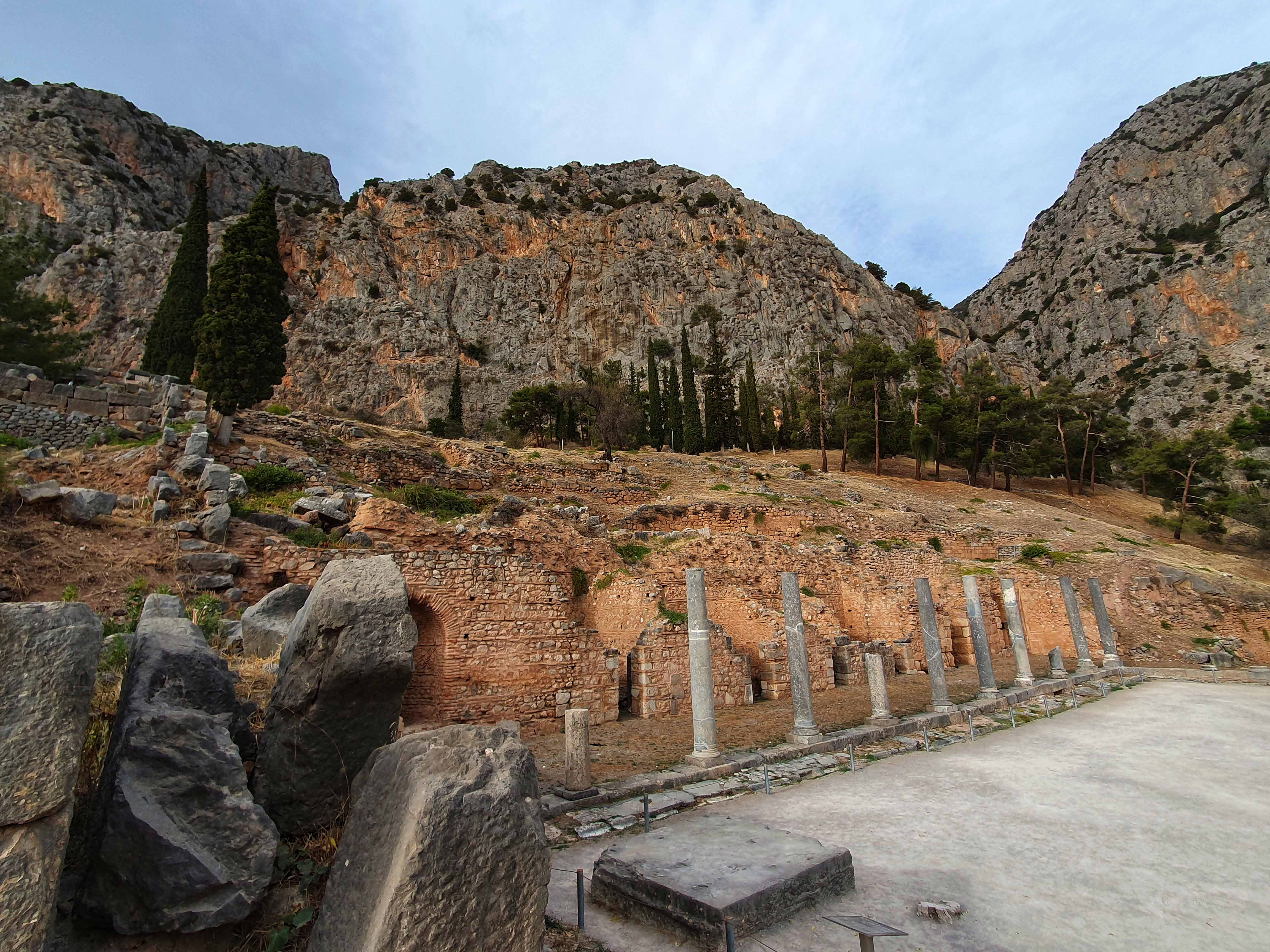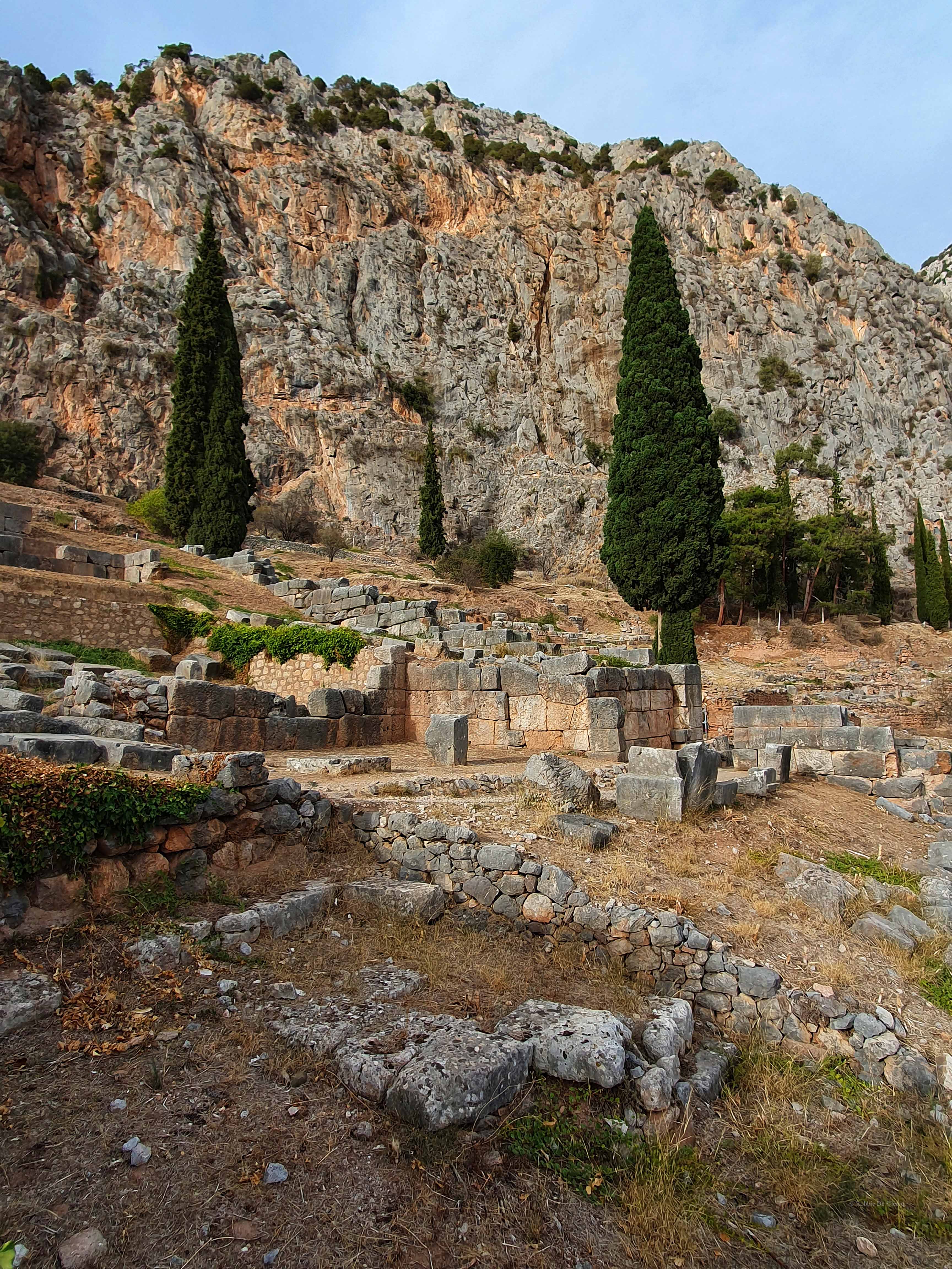 Delphi was voor de oude Grieken zowel letterlijk als figuurlijk het middelpunt, de navel, van de aarde. Volgens de mythologie liet de Griekse oppergod Zeus 2 adelaars vanuit de uithoeken van de aarde opstijgen om zo het middelpunt van zijn rijk vast te stellen. De adelaars zouden elkaar in Delphi zijn tegengekomen op de plek waar in 1913 de omphalós, de bekende navelsteen, werd gevonden.