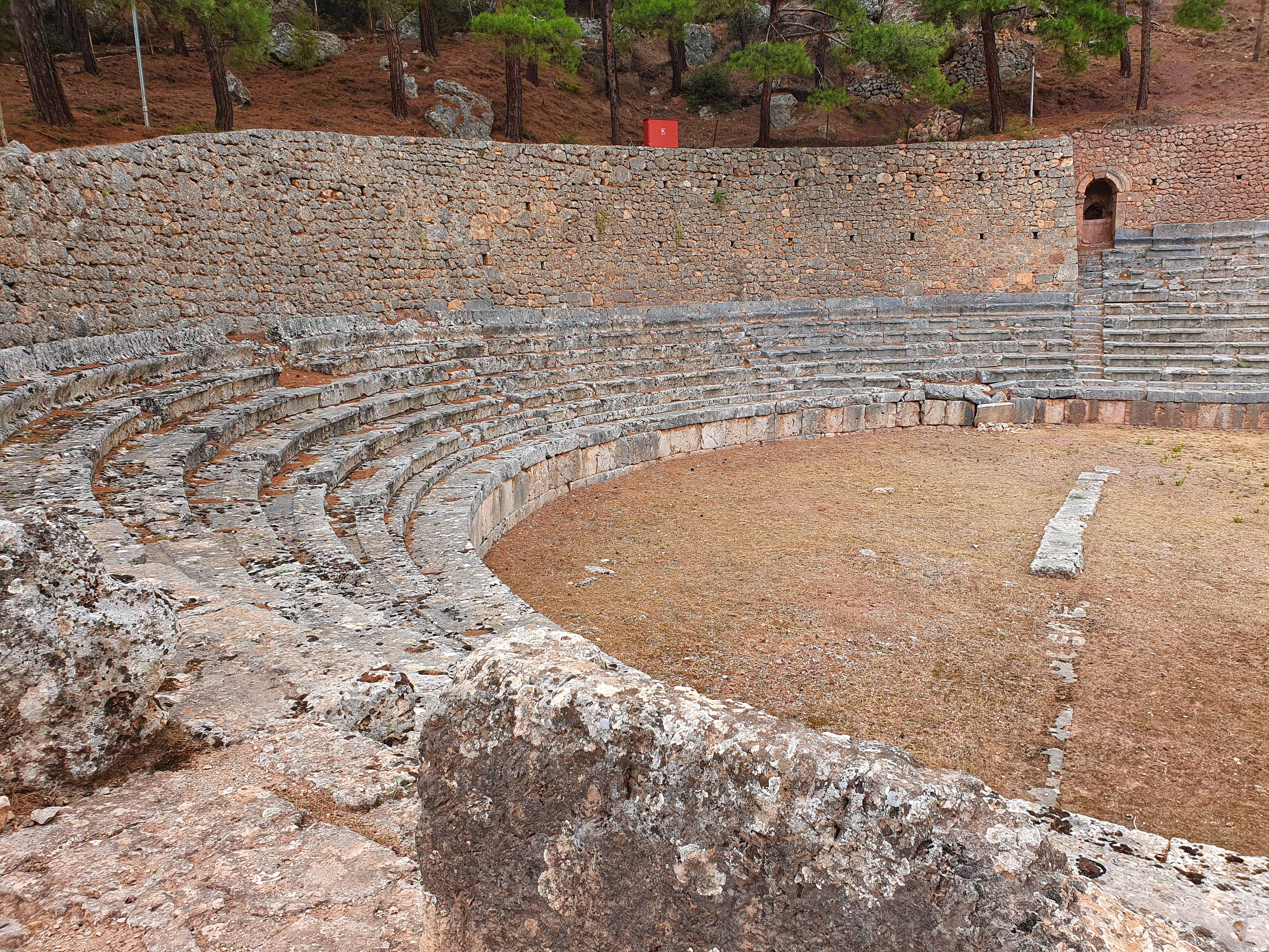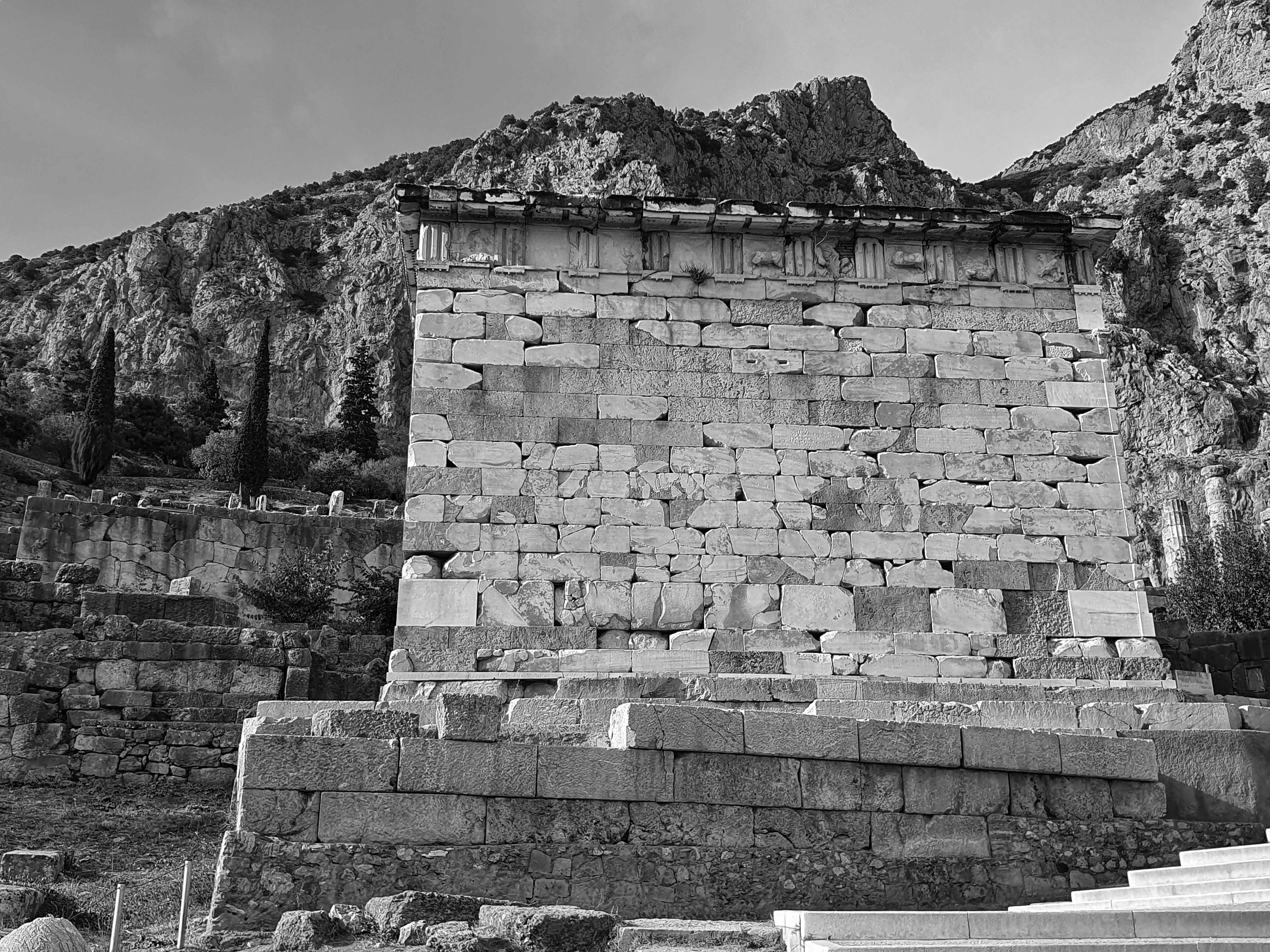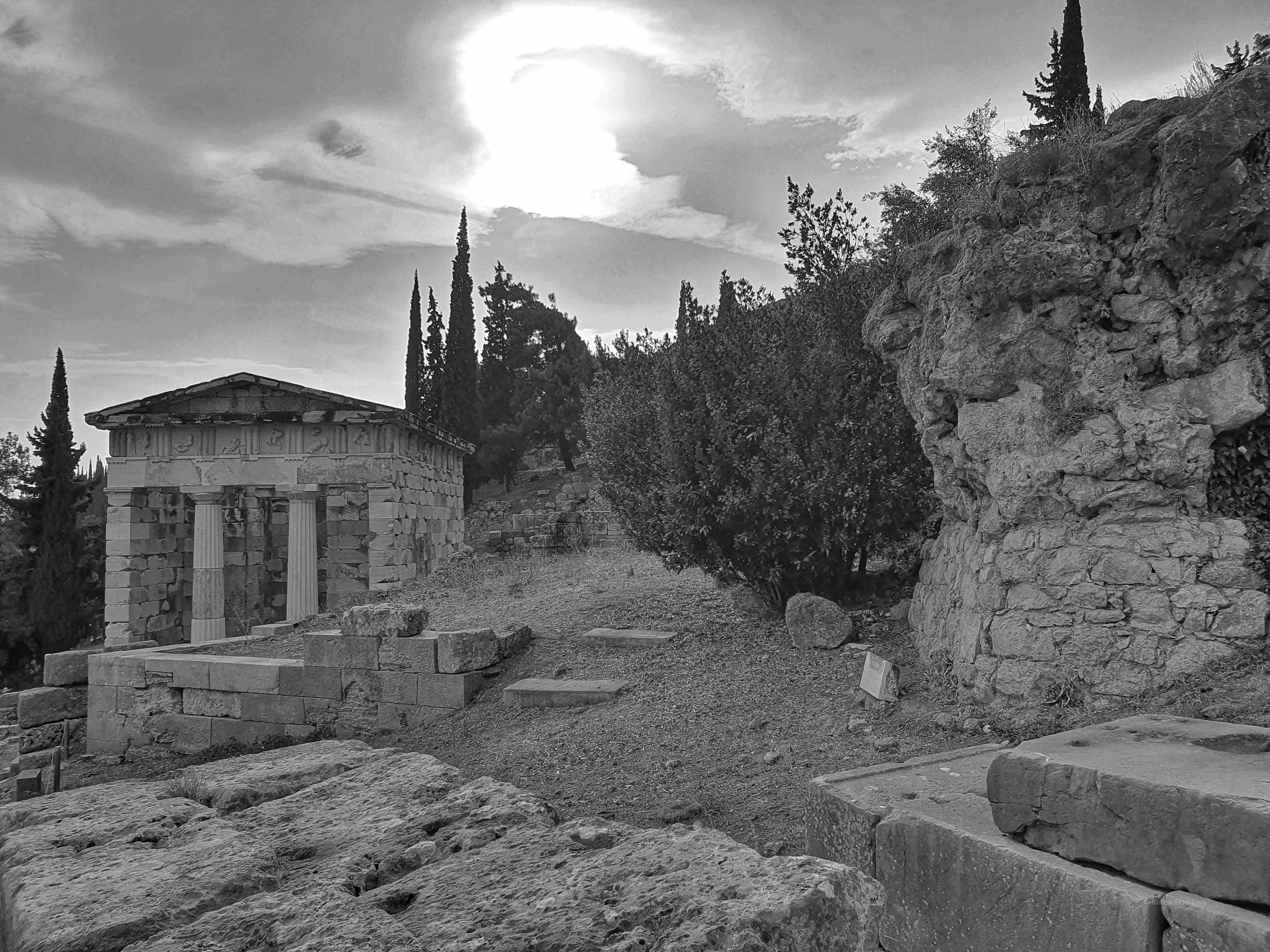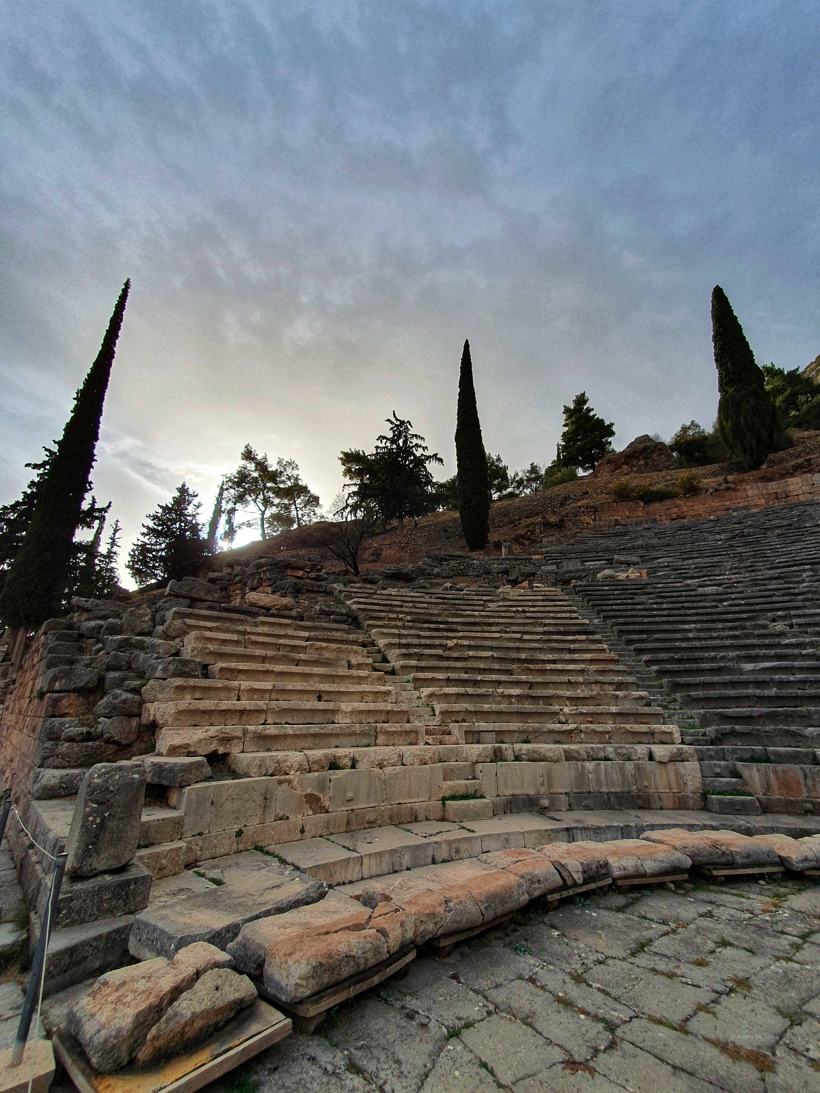 Delphi was voor de oude Grieken zowel letterlijk als figuurlijk het middelpunt, de navel, van de aarde. Volgens de mythologie liet de Griekse oppergod Zeus 2 adelaars vanuit de uithoeken van de aarde opstijgen om zo het middelpunt van zijn rijk vast te stellen. De adelaars zouden elkaar in Delphi zijn tegengekomen op de plek waar in 1913 de omphalós, de bekende navelsteen, werd gevonden.