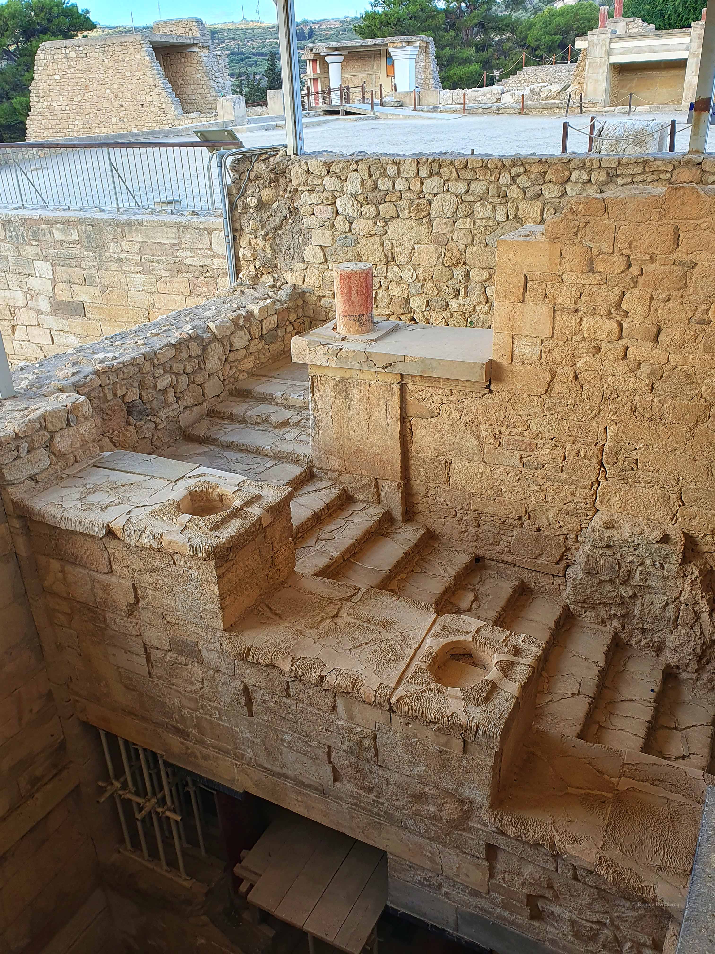 Knossos was volgens de Griekse mythologie de stad van koning Minos, die een labyrint liet bouwen om zijn stiefzoon de Minotaurus een huis te geven, een hybride wezen met een menselijk lichaam en de kop en staart van een stier. De Atheense koningszoon Theseus doodde de Minotaurus en bevrijdde zo zijn stad van de periodieke kinderoffers.