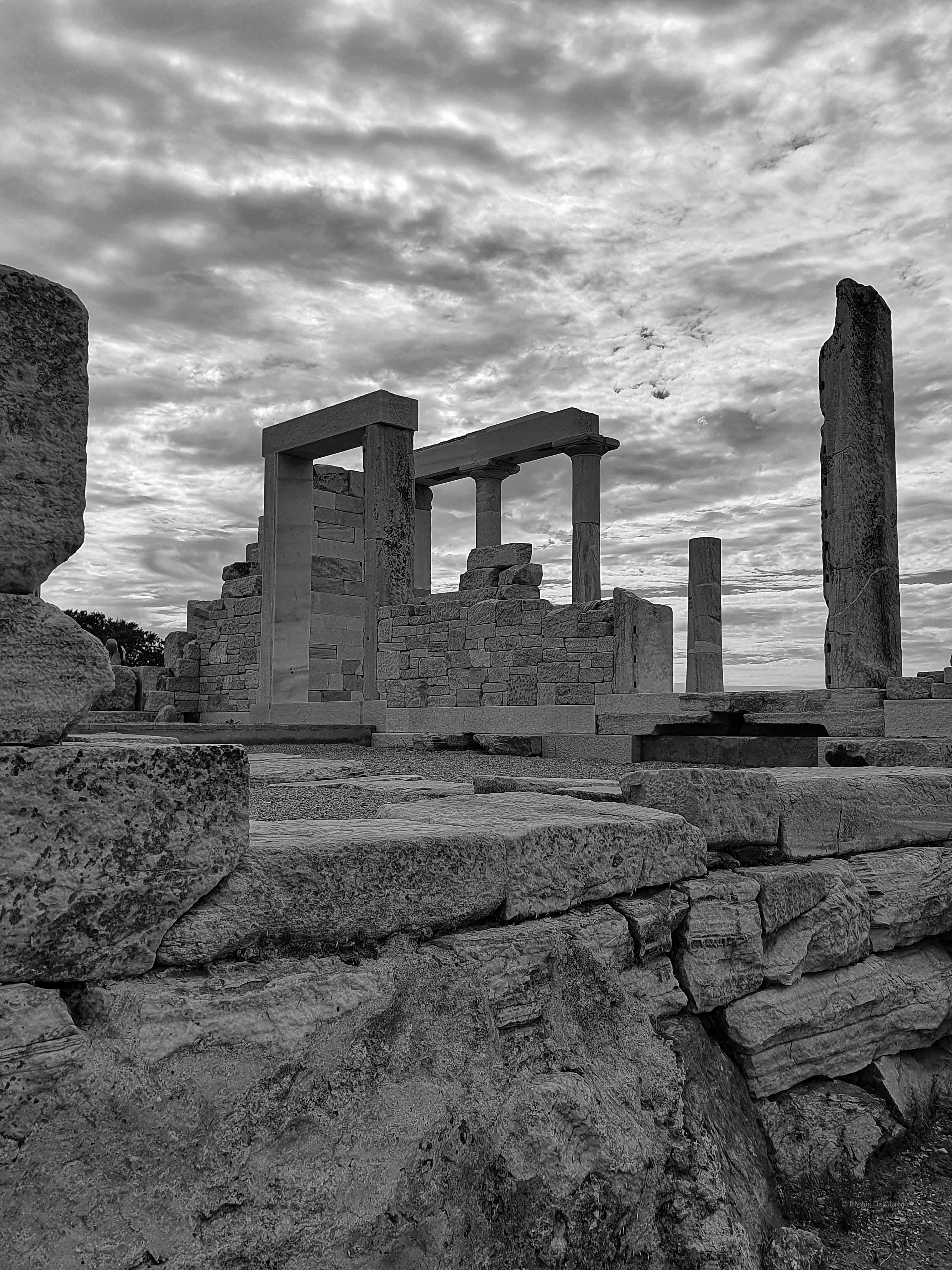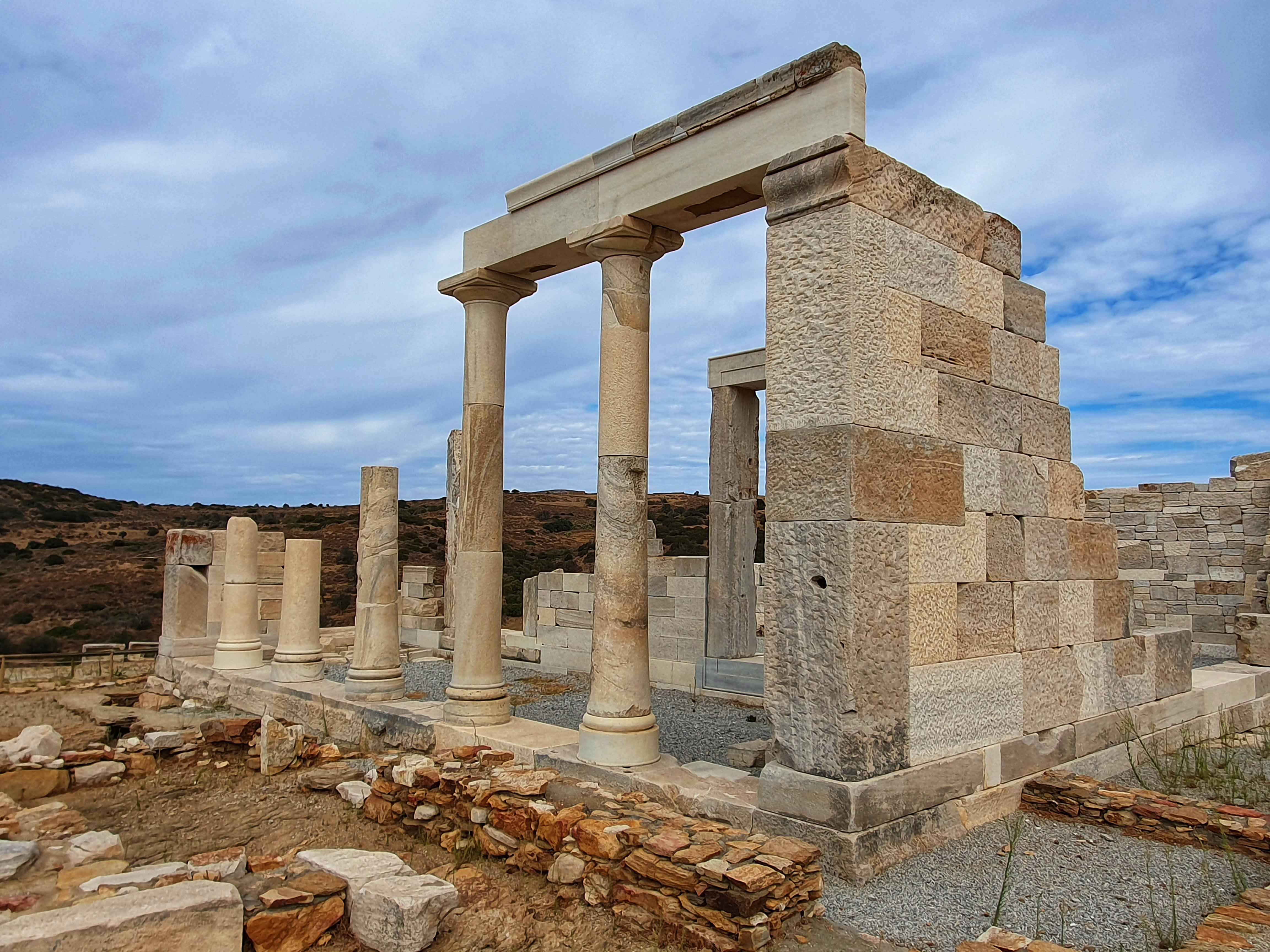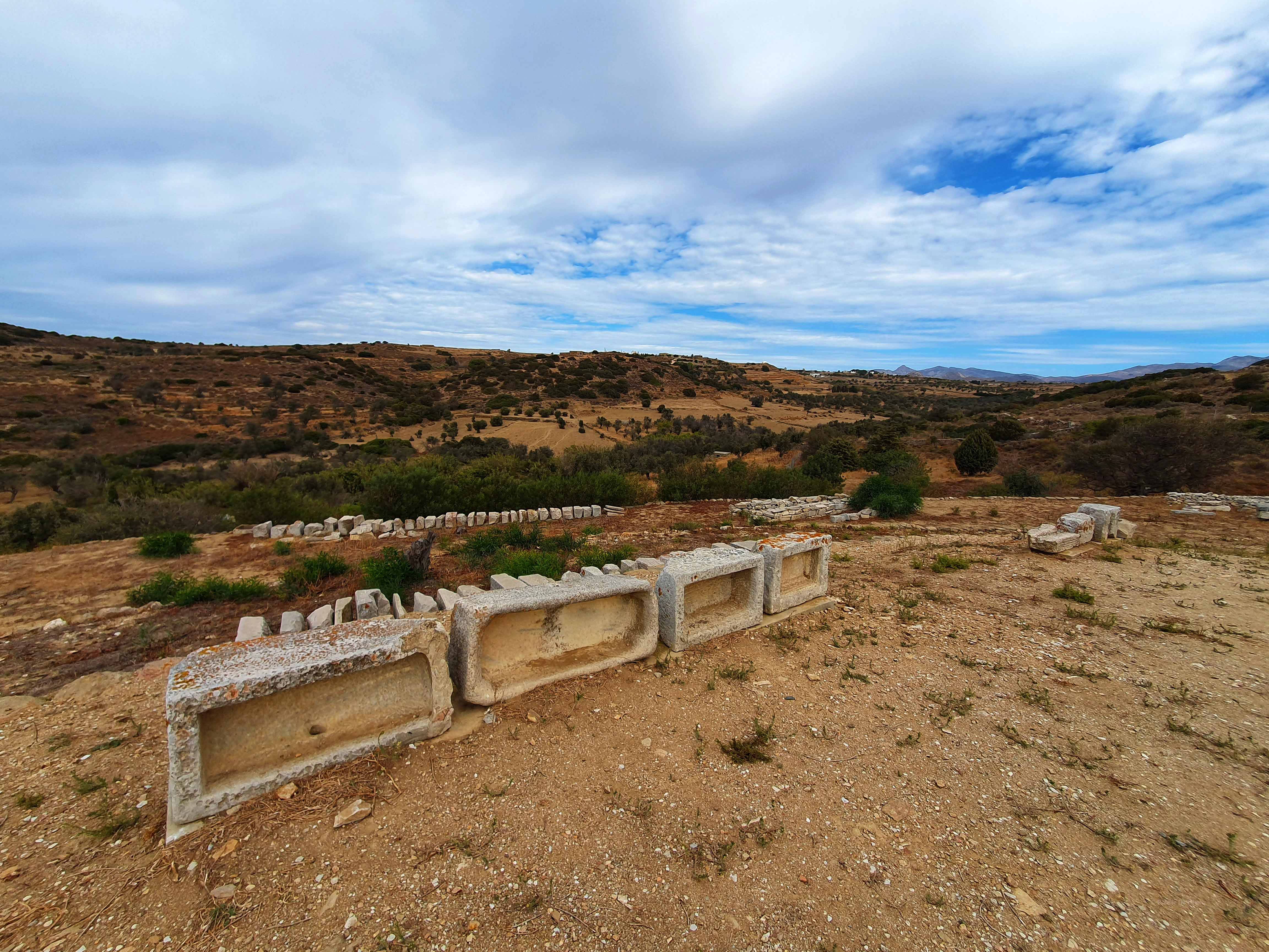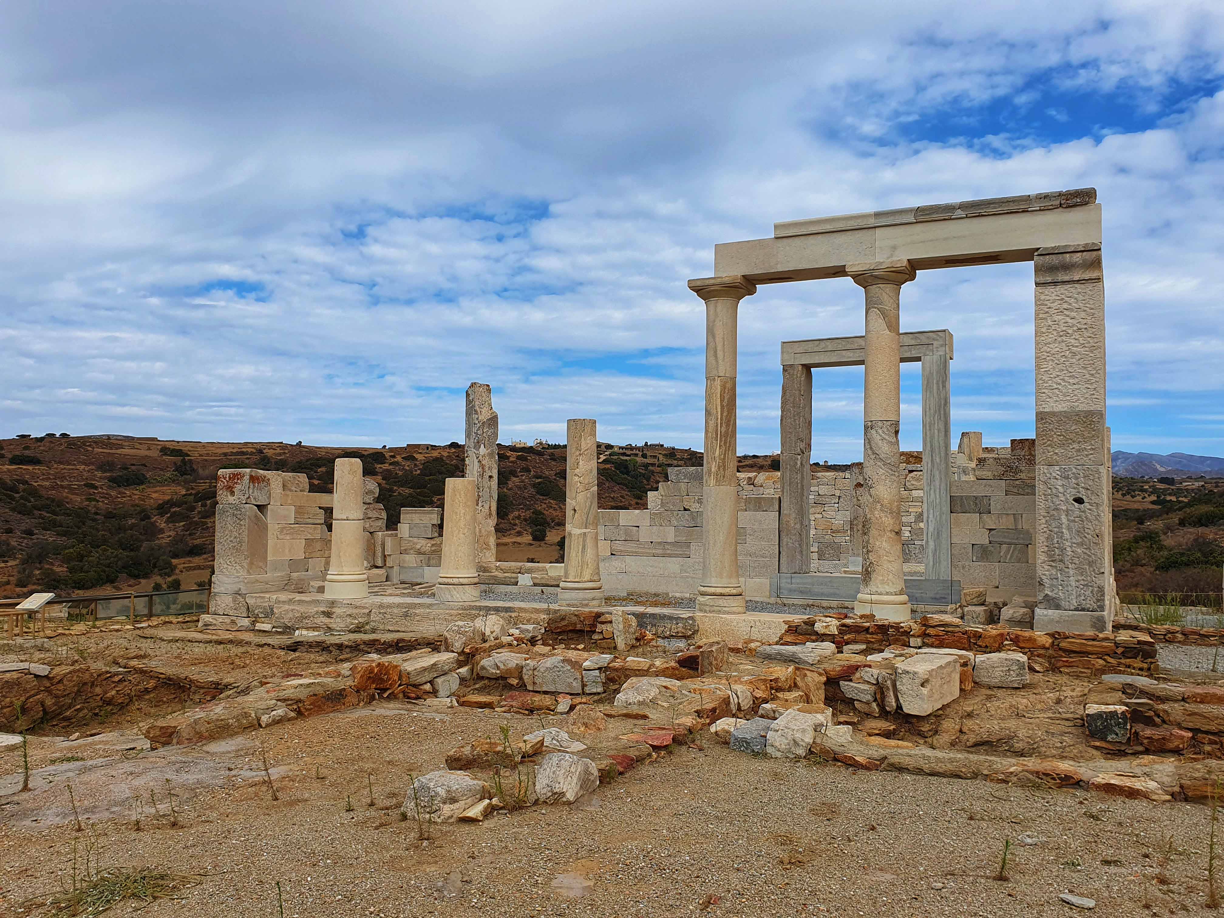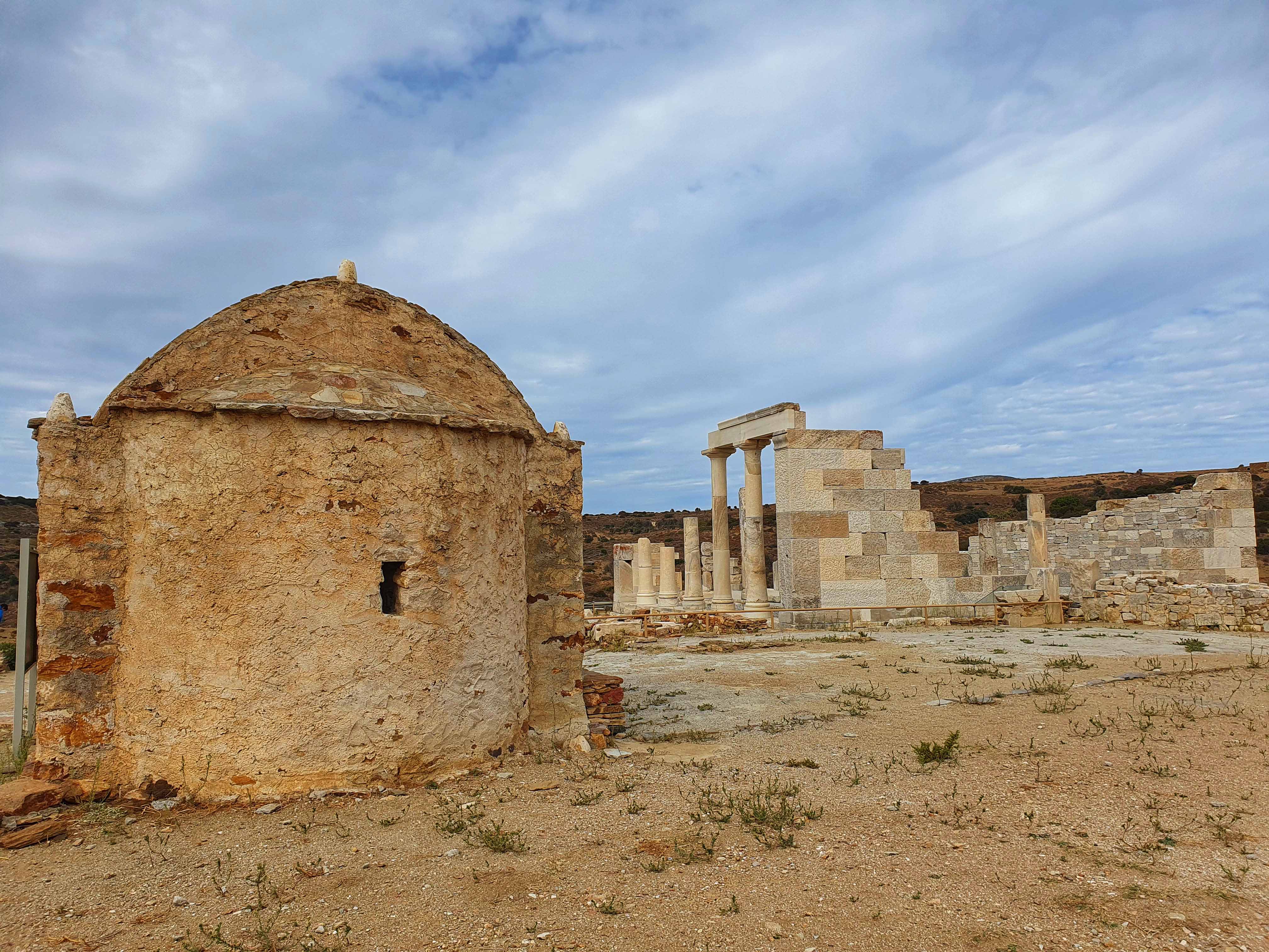 De tempel van Sangri werd rond 530 voor Christus gebouwd. Op basis van de vondsten was het heiligdom waarschijnlijk gewijd aan Demeter of misschien Kore. Er zijn ook aanwijzingen voor een cultus voor Apollo op de site. Als de tempel in de 4e eeuw na Christus nog steeds in gebruik was, zou hij gesloten zijn geweest tijdens de vervolging van heidenen onder de christelijke keizers. In de 6e eeuw na Christus werd de tempel grotendeels afgebroken en werd op dezelfde plek een christelijke basiliek met drie schepen uit dezelfde steen gebouwd.