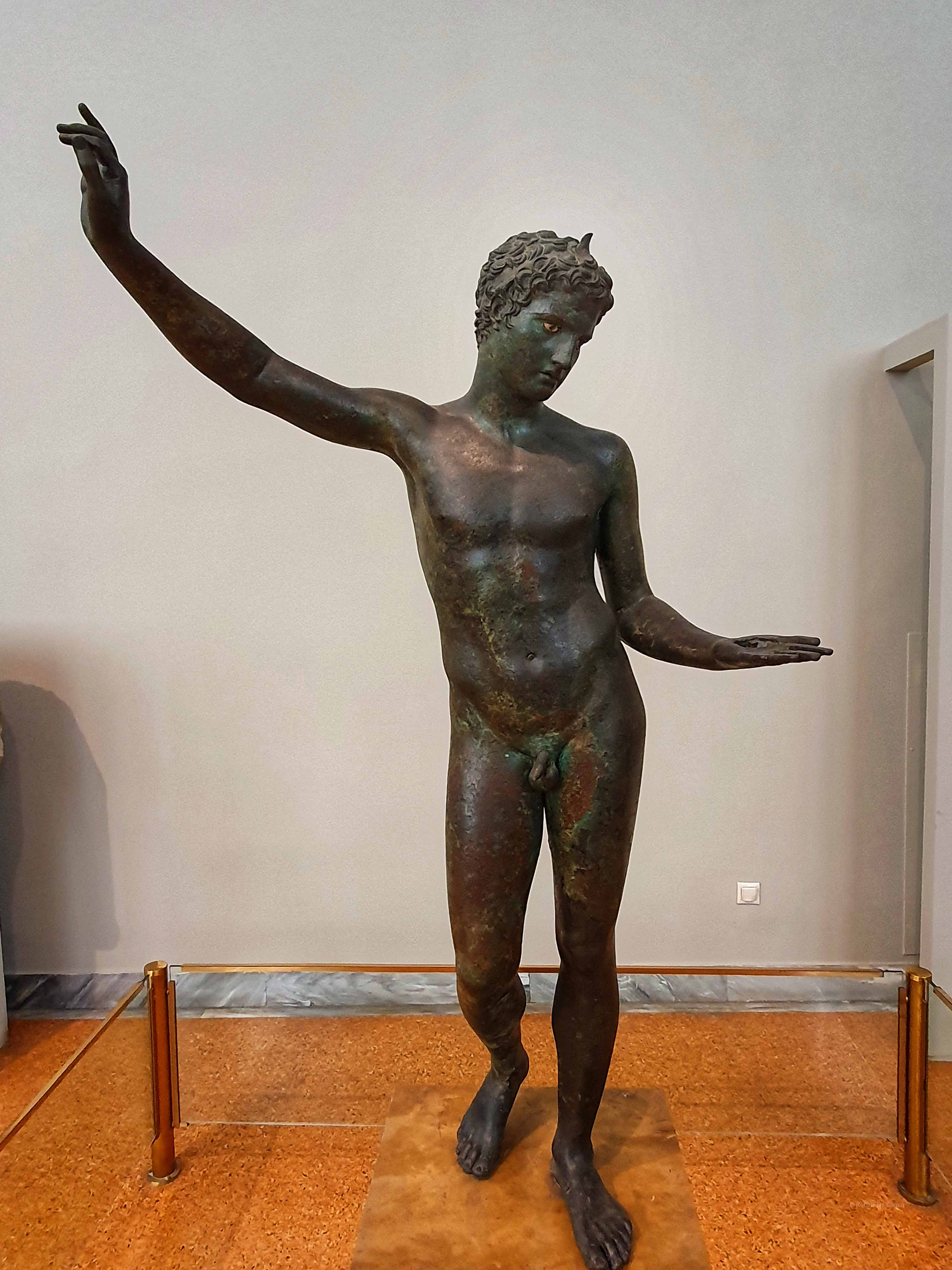 Het beeld, gedateerd rond 340-330 v.Chr., is een van de meest briljante producten van de Peloponnesische bronzen beeldhouwkunst.