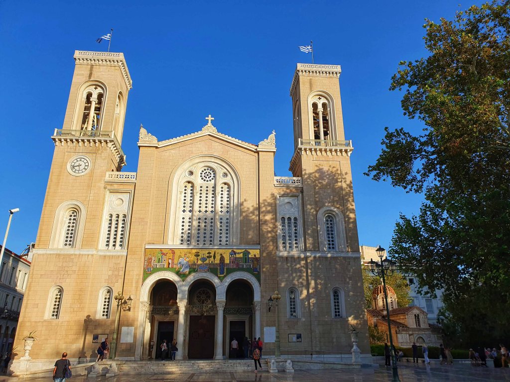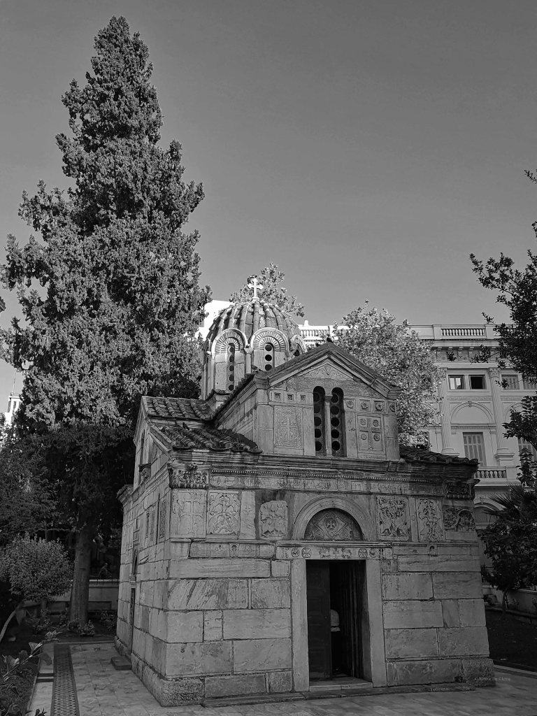 De 750 meter lange winkelstraat Ermou bracht ons naar misschien wel het mooiste kerkje van Athene: Panagia Kapnikarea. De kerk werd gebouwd in 1050 en is gewijd aan Maria. Het gebouw zou eigenlijk vernietigd worden door koning Otto van Beieren omdat het volgens hem zijn uitzicht vanuit het koninklijk paleis verpestte. Zijn vader was echter liefhebber van antieke monumenten en kon de plannen gelukkig dwarsbomen.