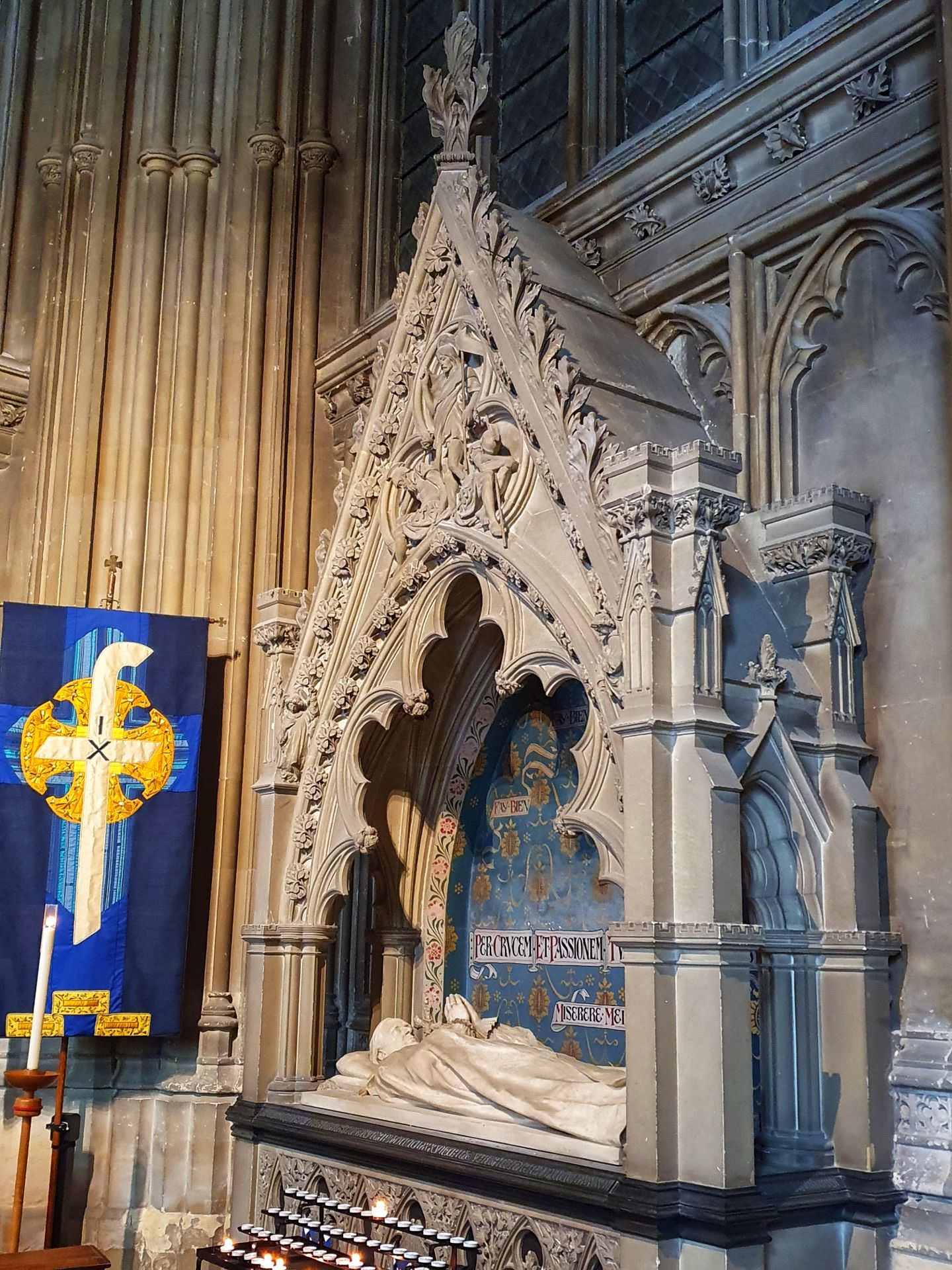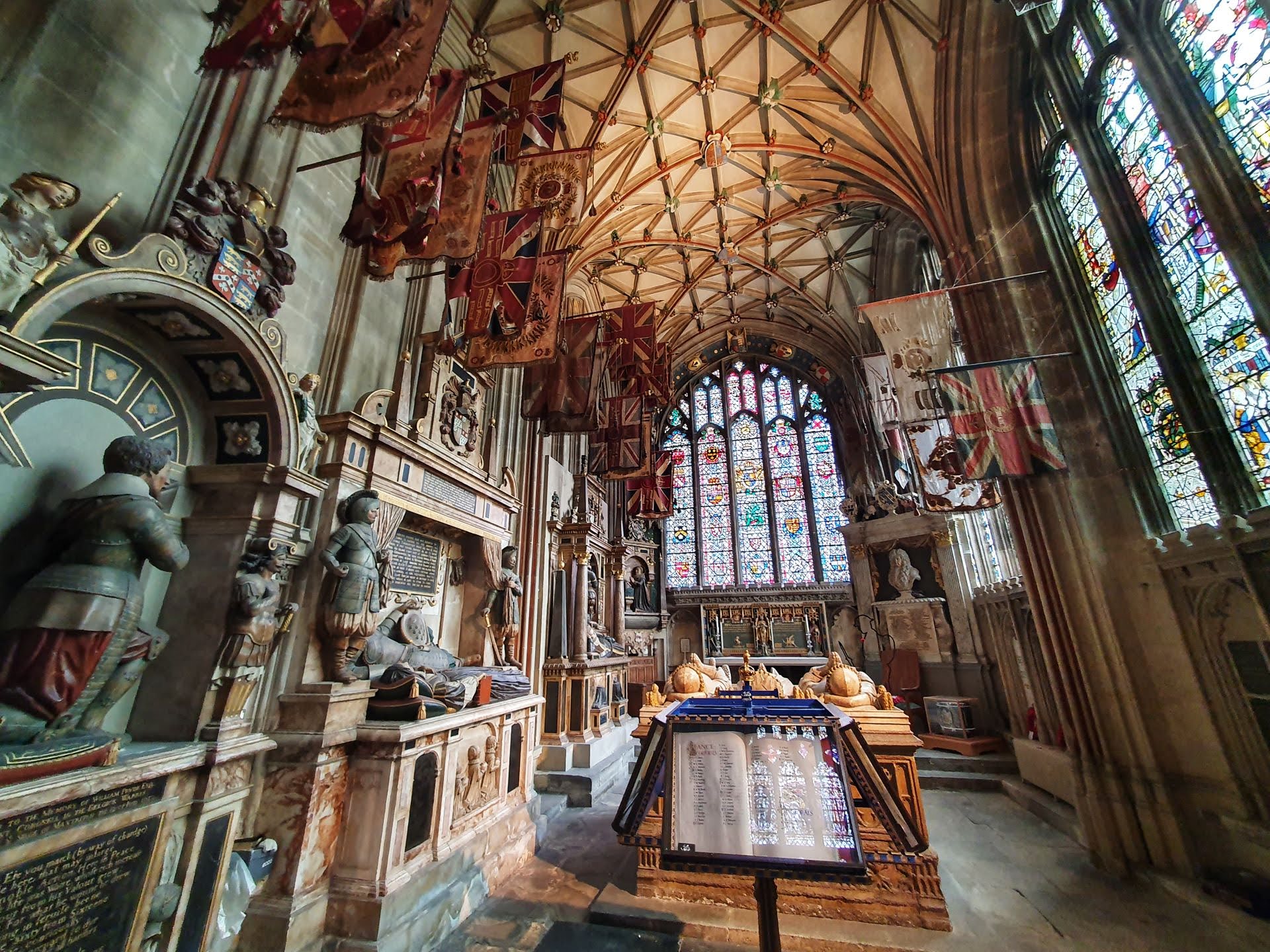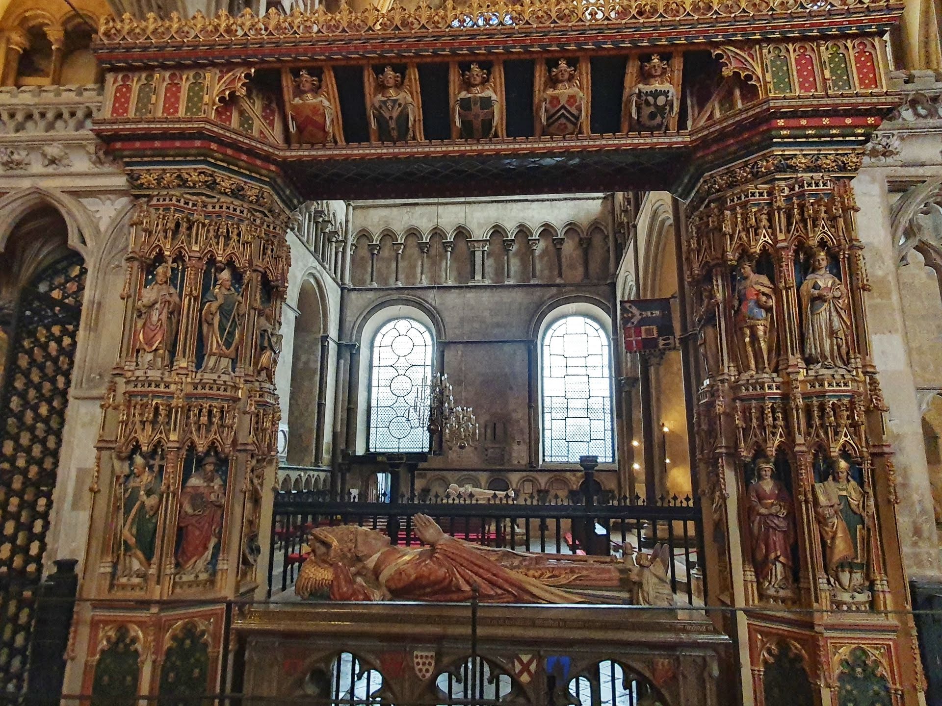 In de kathedraal zijn verschillende glas-in-loodramen te bewonderen, waarop onder meer heiligen zoals Petrus en Johannes, maar ook Adam en Eva zijn afgebeeld. Op de verdieping van de Abbey Chair ligt het graf van de Black Prince.