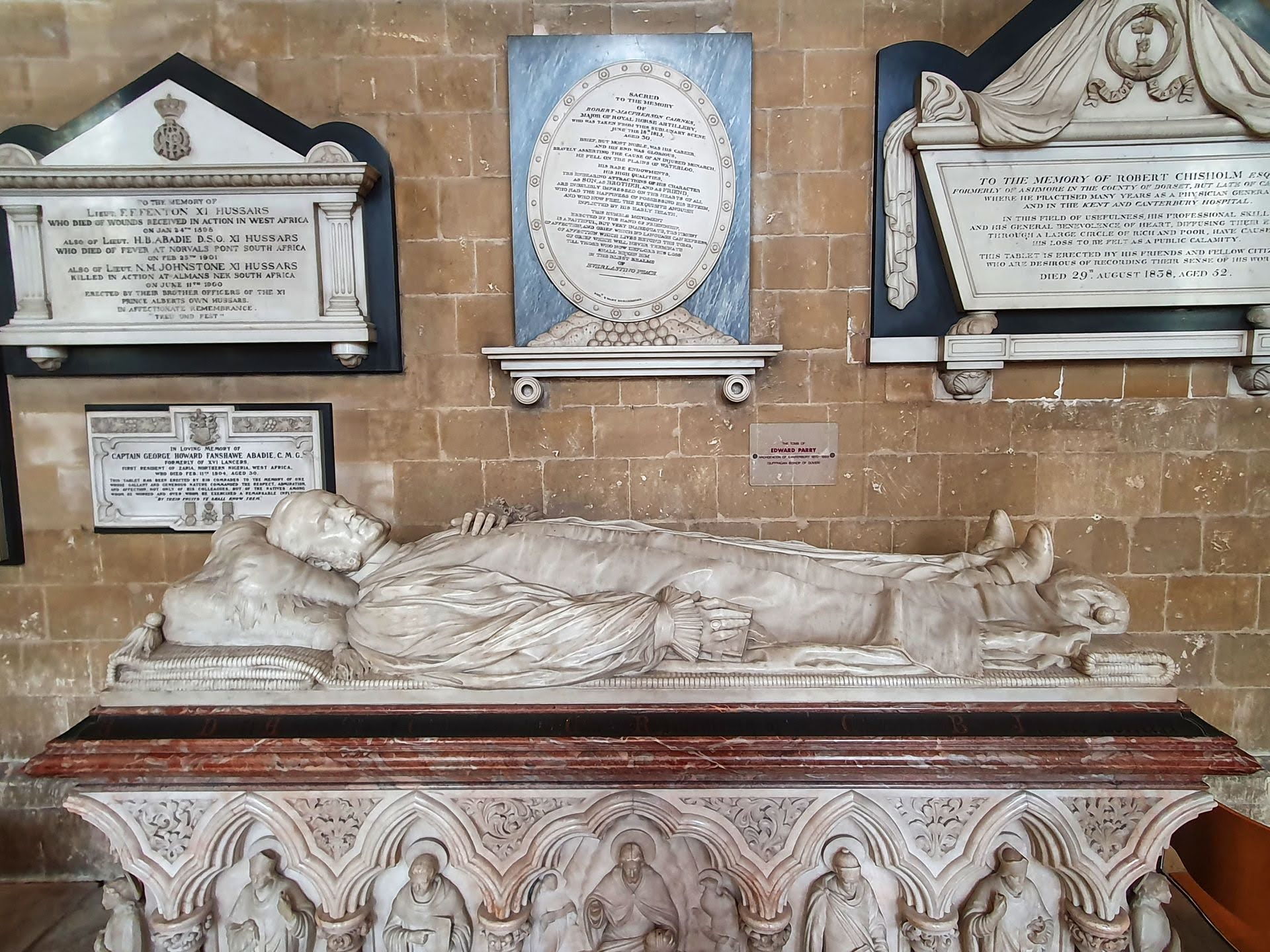 De vieringtoren op de kathedraal is 72 m hoog. In de crypte bevinden zich nog enkele graven. In de jaren 1500 stond hier het graf van aartsbisschop Thomas Becket, maar kort daarna werd het vernietigd. Voor de ingang van de crypte is er een herdenkingsmonument voor hem.