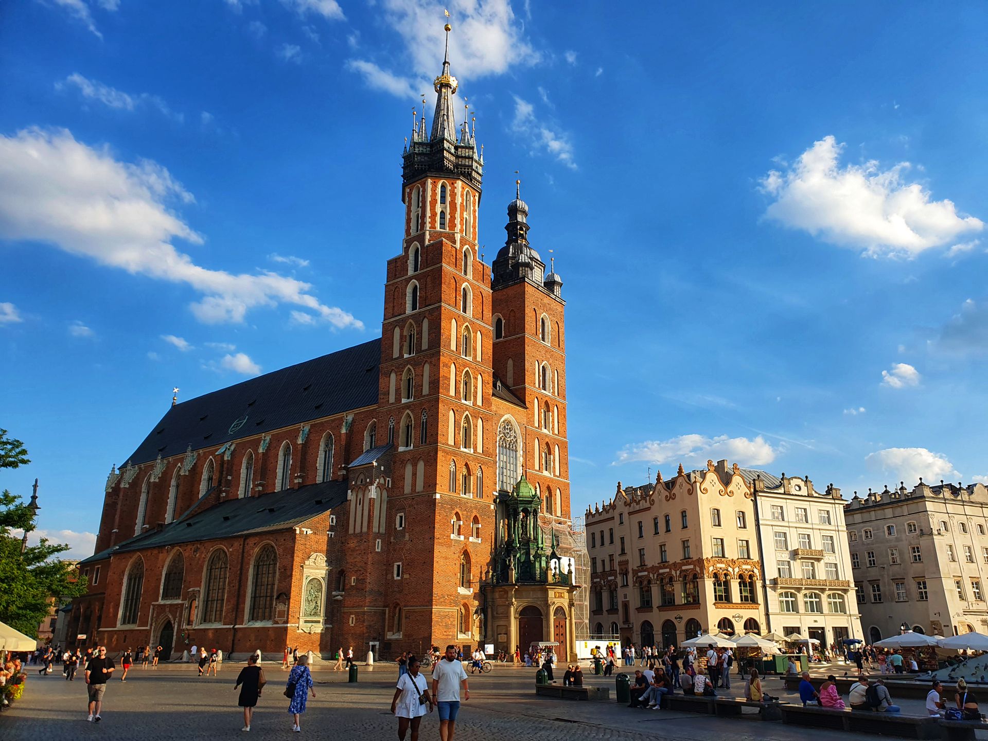 Vanaf een hoogte van circa 54 meter wordt sinds de 14e eeuw door een brandweerman elk vol uur een korte, niet voltooide melodie geblazen: de Hejnał. Het verhaal gaat dat in 1241 een torenwachter vanaf de noordelijke toren van de kerk de Tataren zag komen. Hij wilde zijn stadsgenoten waarschuwen en speelde op zijn trompet. Zijn trompetspel werd plotseling afgebroken omdat hij geraakt werd door een pijl. De stadspoorten konden nog op tijd afgesloten worden waardoor de stad veilig is gebleven. Ter herinnering aan deze gebeurtenis wordt nog altijd de afgebroken melodie elk uur gespeeld. Sinds 1927 wordt het signaal door Radio Kraków op het middaguur uitgezonden. Het betreft de oudste onafgebroken muziekuitzending ter wereld.