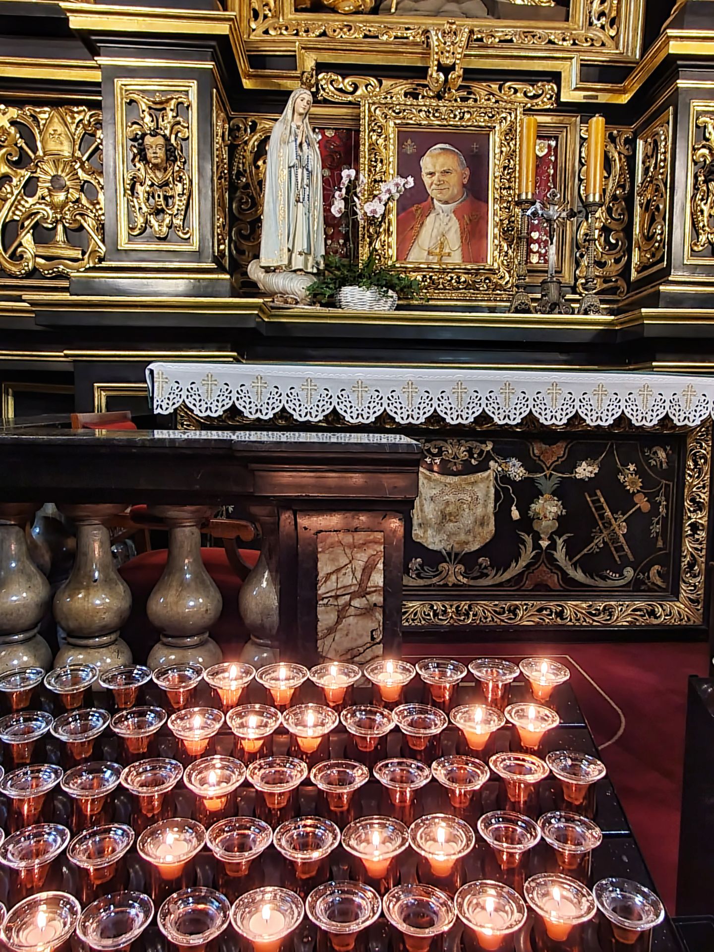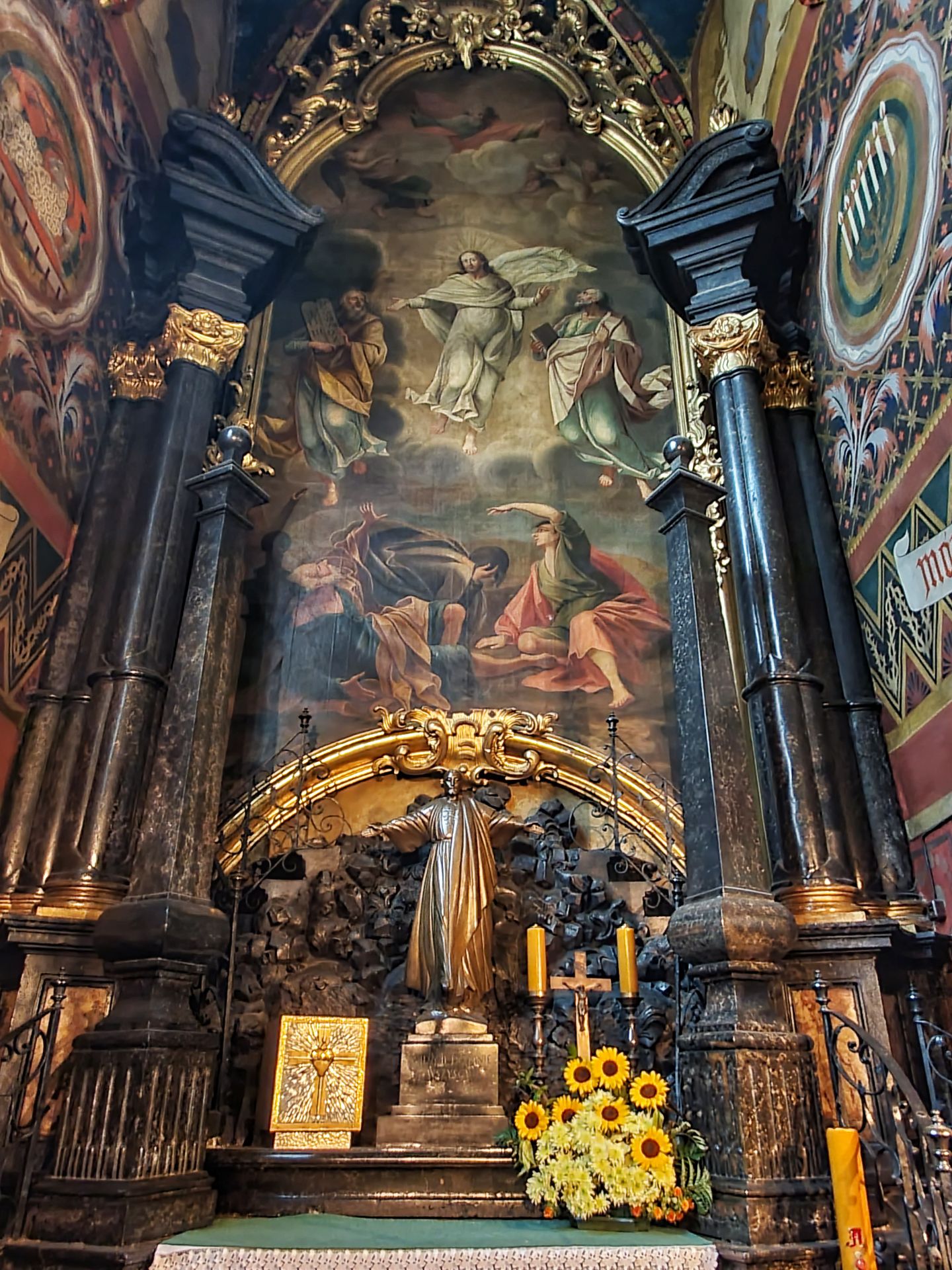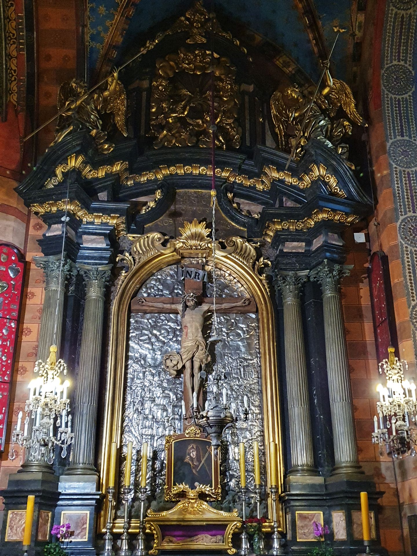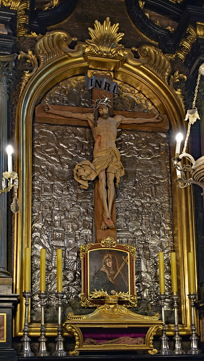 Het belangrijkste kunstwerk betreft het hoogaltaar van Veit Stoss. Het is het grootste altaar van Europa in zijn soort en werd in de jaren 1477-1489 vervaardigd. Het altaar werd mogelijk gemaakt door een schenking van de burgerij van Krakau. Het Maria-altaar heeft een afmeting van 11 meter breed bij 13 meter hoog. De hoogte van de realistisch weergegeven beelden bedraagt circa 2,7 meter. De constructie van het altaar werd van eikenhout gemaakt, de beelden uit lindehout gesneden. In geopende stand worden scènes van de vreugdevolle geheimen van Maria getoond, bij gesloten stand zijn twaalf droevige scènes uit het leven van Maria te zien.