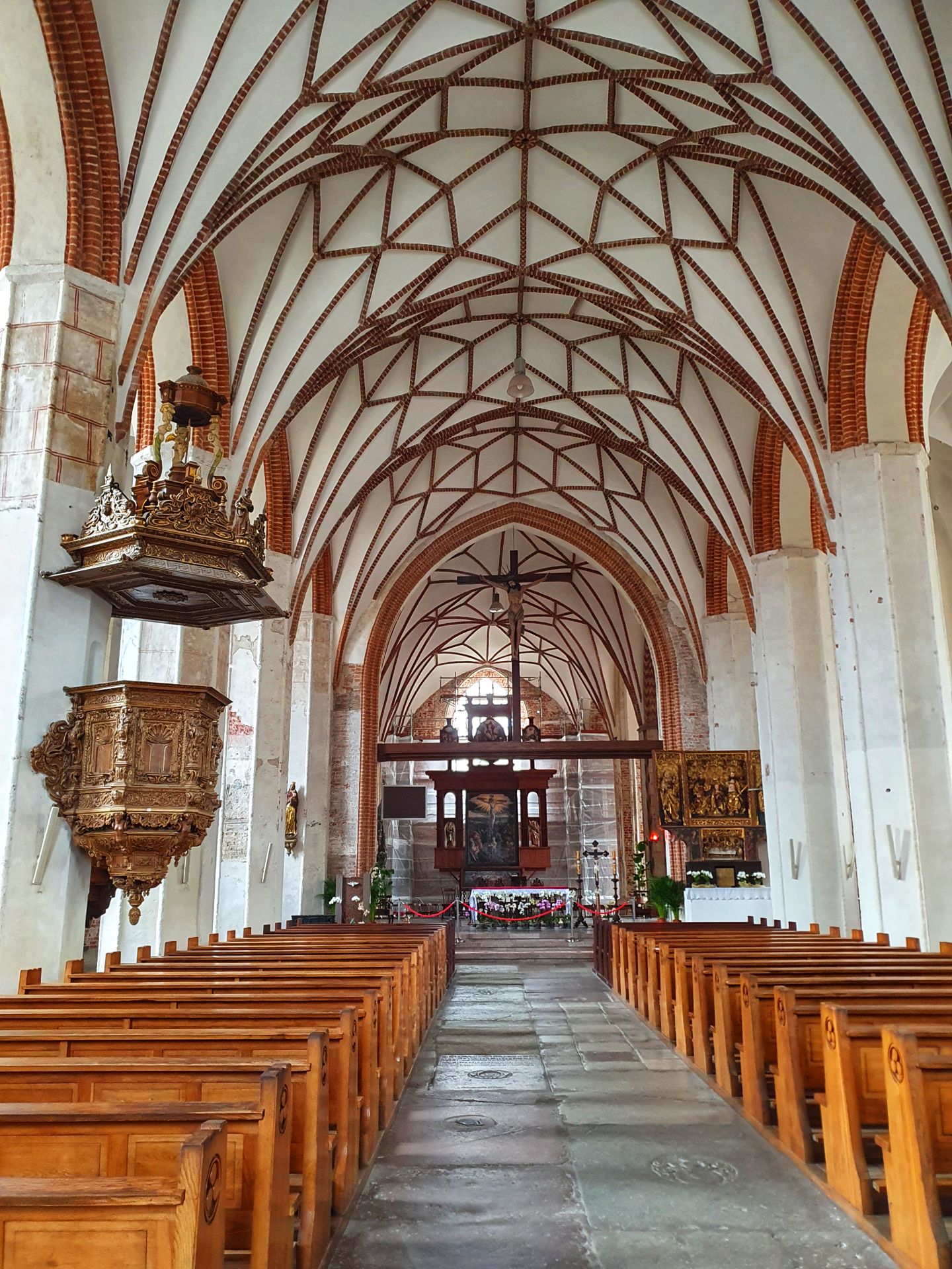 De eerste spadesteek vond plaats in 1343, maar de bouw van de huidige kerk begon in 1379. Tussen 1536 en 1572 werd de basiliek tegelijkertijd gebruikt voor katholieke en lutherse diensten. Met een capaciteit van meer dan 25.000 zitplaatsen en een volume van ongeveer 155.000 kubieke meter is het een van de drie grootste bakstenen kerken ooit gebouwd, samen met San Petronio in Bologna en de Frauenkirche in München. Het was ook de op één na grootste Lutherse kerk ter wereld van de 16e eeuw tot 1945. Het gebouw is 105,5 meter lang en het schip is 41 meter breed en de totale breedte van de kerk is 66 meter.