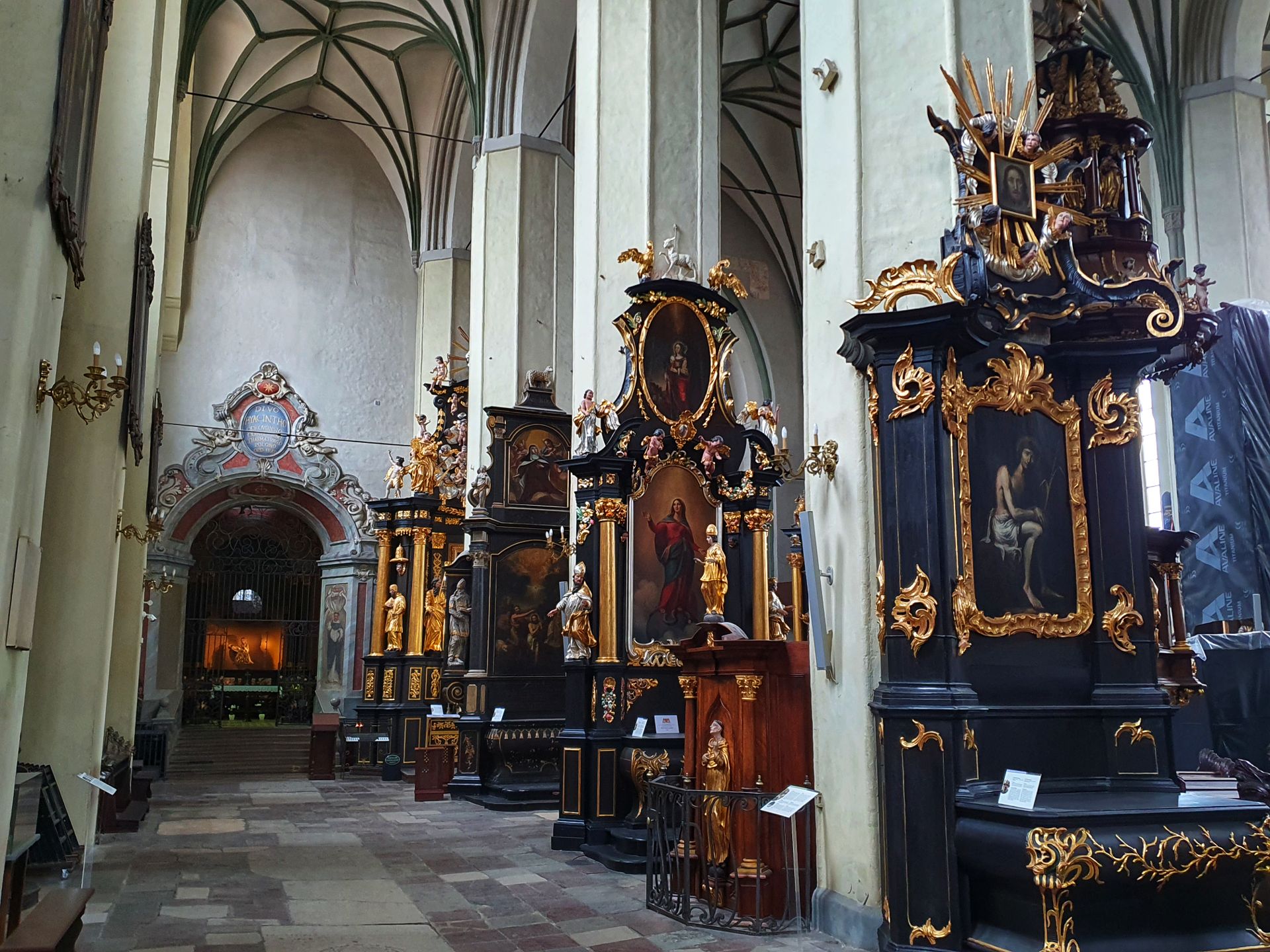 De gerestaureerde kerk heeft verschillende uitzonderlijke en unieke bezienswaardigheden. De belangrijkste daarvan is het Barnsteenaltaar. Barnsteen of amber, een gefossiliseerde boomhars die overvloedig wordt aangetroffen in het Oostzeegebied, is uitgehouwen in indrukwekkende altaarsculpturen die de heilige Birgitta van Zweden, de Maagd Maria, de heilige Elizabeth Hesselblad en een monstrans met relikwieën van paus Johannes Paulus II afbeelden.