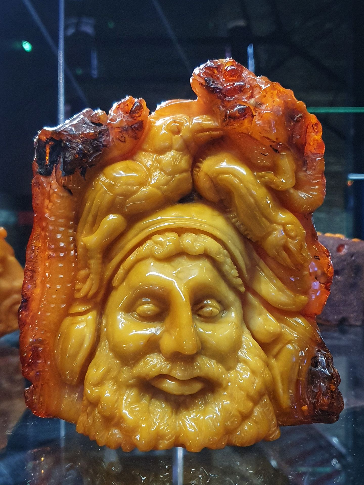 De trots van de tentoonstelling, in bruikleen van een privéverzamelaar in München, is een verzameling historische voorbeelden van barnsteenkunst, gemaakt in Gdansk in de 17e en 18e eeuw. Ook het werk van kunstenaars uit Gdansk wordt getoond, te beginnen met toegepaste kunst tot hedendaagse installaties waarbij het barnsteen als basismateriaal wordt gebruikt.