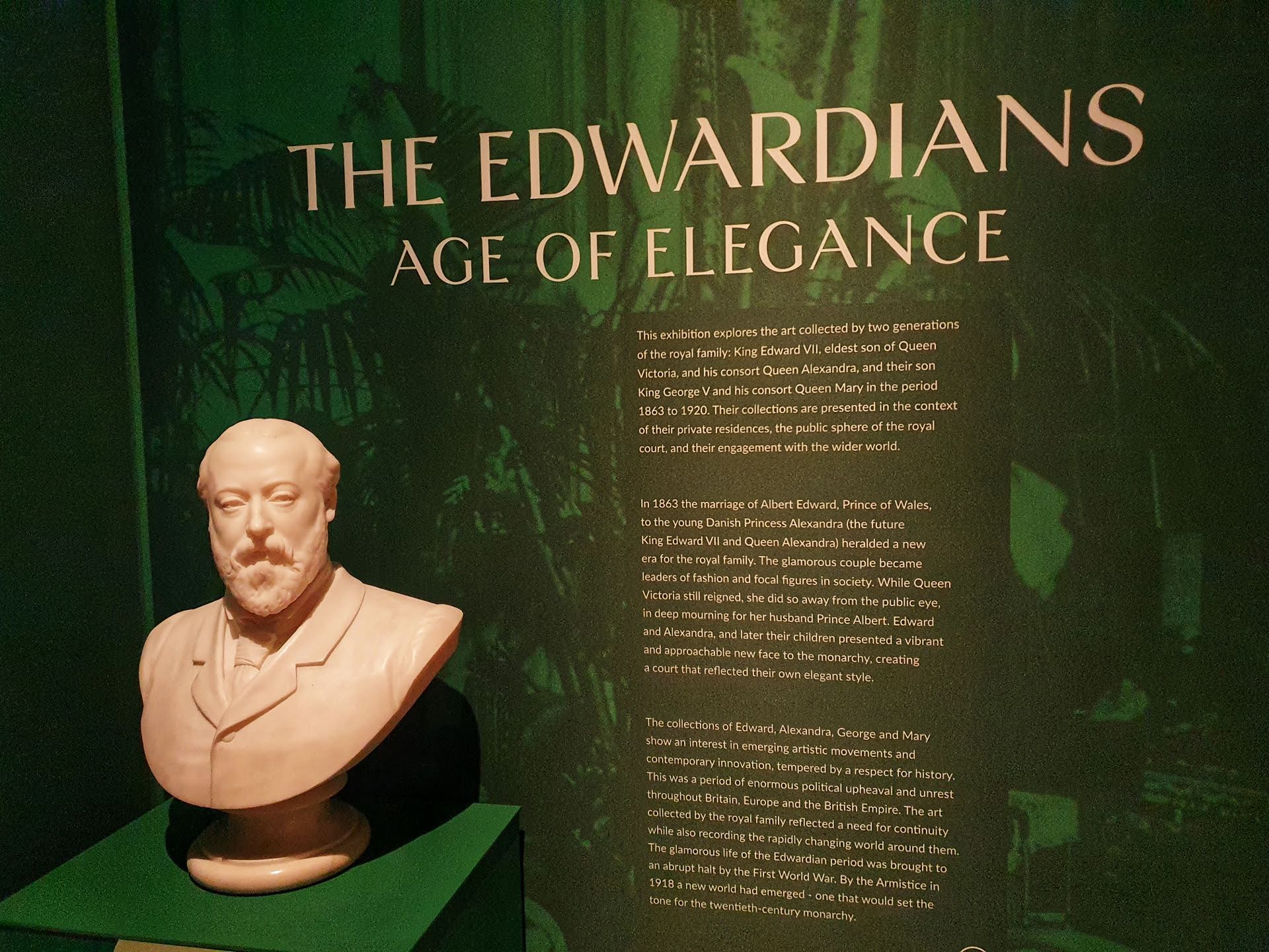 De expo richt zich op twee koninklijke echtparen die symbool staan voor de “Edwardiaanse” stijl: Edward VII en Queen Alexandra, gevolgd door George V en Queen Mary. De tentoonstelling toont hoe deze vorsten uiting gaven aan luxe, mode, kunst en maatschappelijke verandering in een tijd waarin Groot-Brittannië zich aan de vooravond van de moderne tijd bevond.