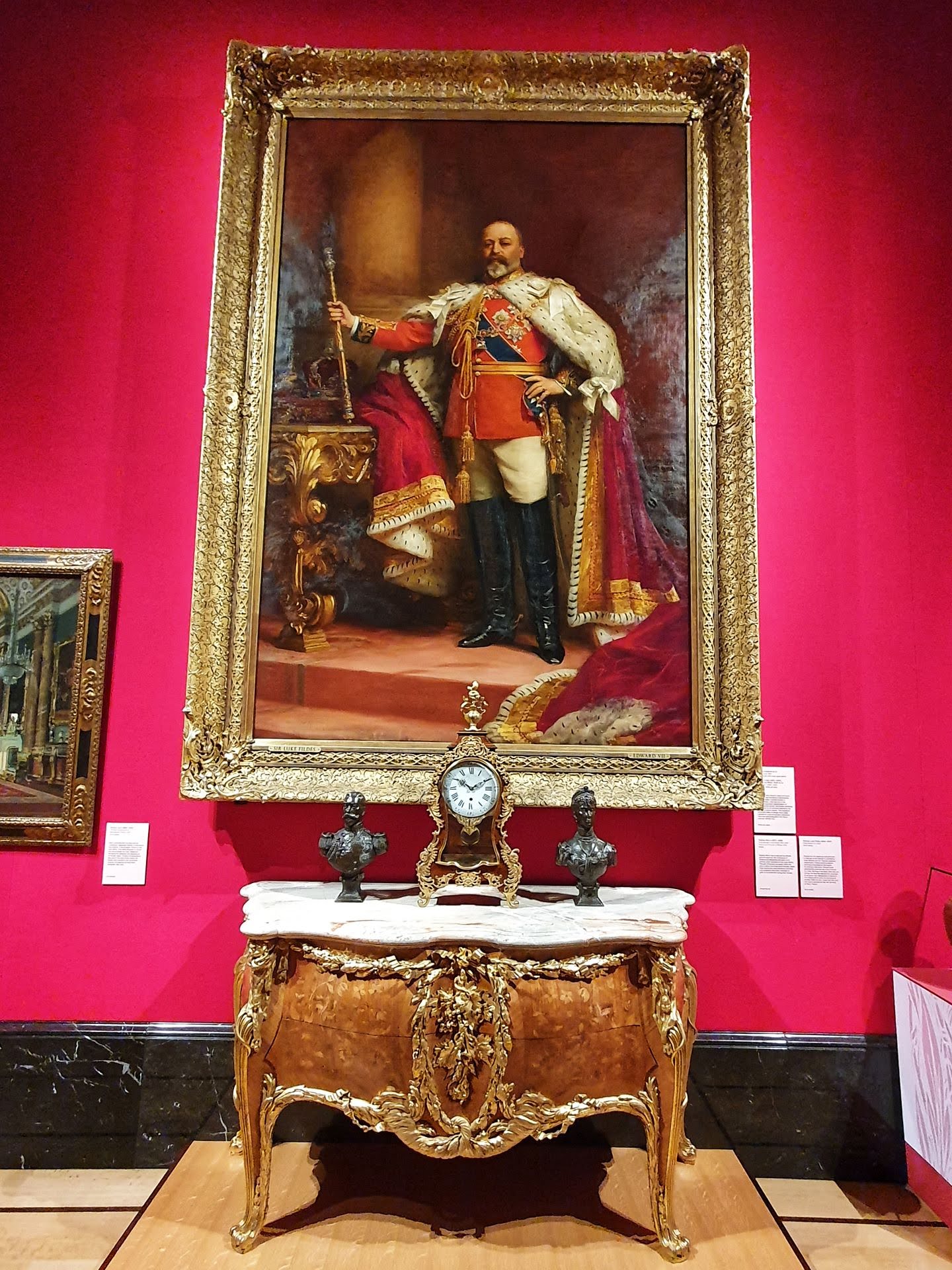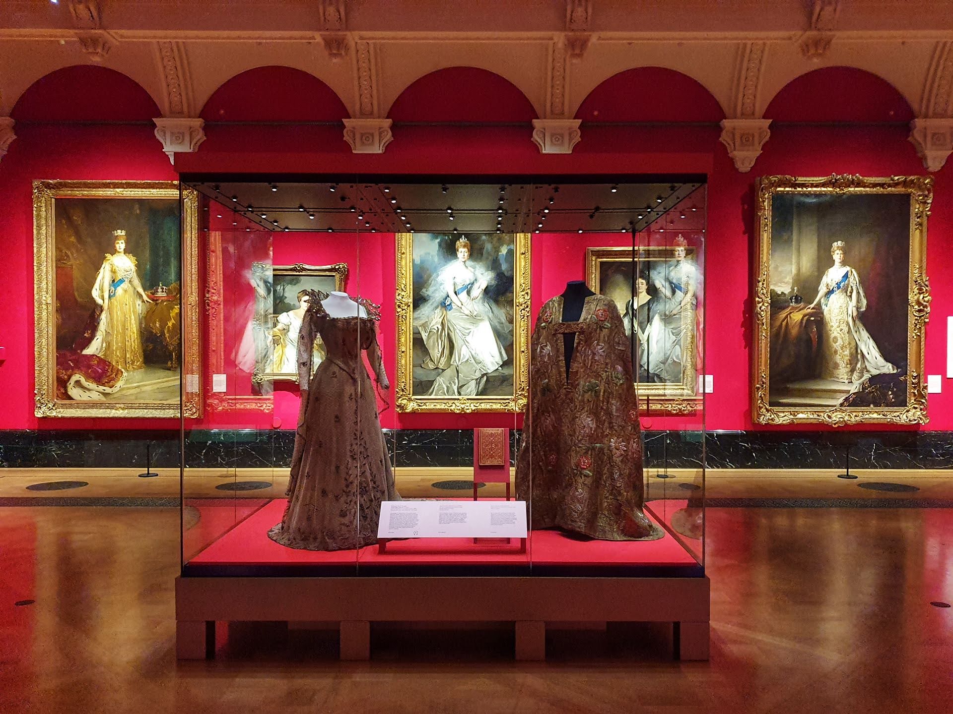 Meer dan 300 voorwerpen uit de staatscollectie zijn tentoongesteld, waarvan bijna de helft voor het eerst publiek zichtbaar is. Een van de pronkstukken is het goudkleurige kroningskleed van Queen Alexandra uit 1902, ontworpen door het Parijse modehuis Morin Blossier, versierd met duizenden gouden pailletten en nationale emblemen van het VK. Ook juwelen (zoals de “Dagmar-ketting”), schilderijen van toonaangevende kunstenaars zoals John Singer Sargent en Edward Burne‑Jones, objecten van Fabergé en foto’s en documenten uit de periode maken deel uit van de tentoonstelling.