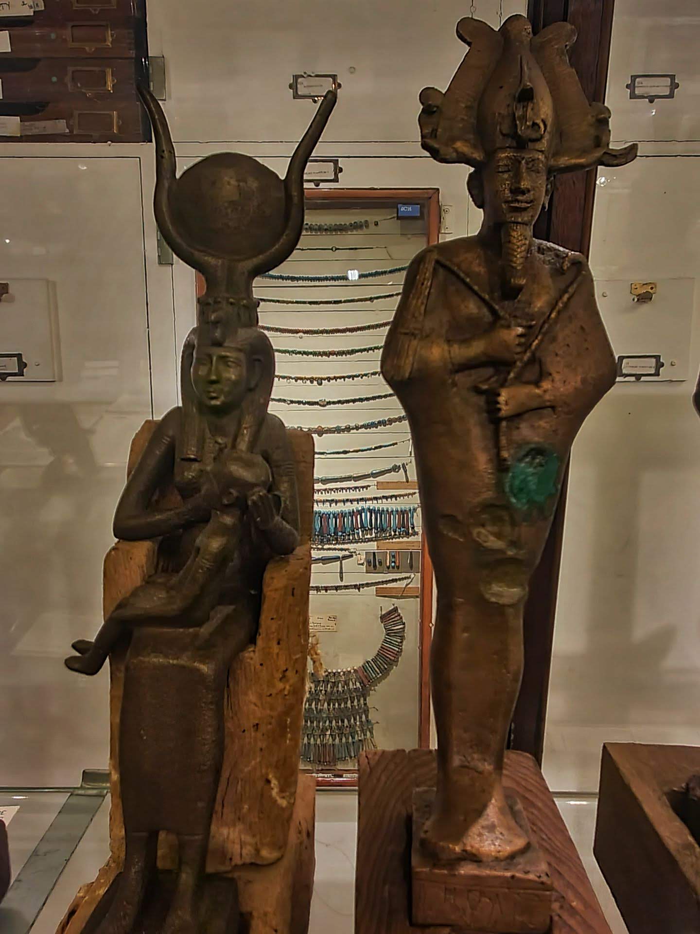 Een aantal van de meest iconische stukken van de collectie roepen direct een gevoel van tijdsverloop op. Het oudste bekende kledingstuk, de zogenaamde “Tarkhan‑jurk”, die teruggaat tot ca. 3000 voordat Christus, is een sensationeel voorbeeld. Verder bevat de verzameling inscripties uit piramideteksten van farao’s zoals Akhenaten en zijn verblijf in Amarna, en een omvangrijke reeks portretten van mummies uit de Romeinse periode – stuk voor stuk voorwerpen die niet alleen de elite hadden, maar ook aspecten van anonimiteit en dagelijks gebruik belichamen.