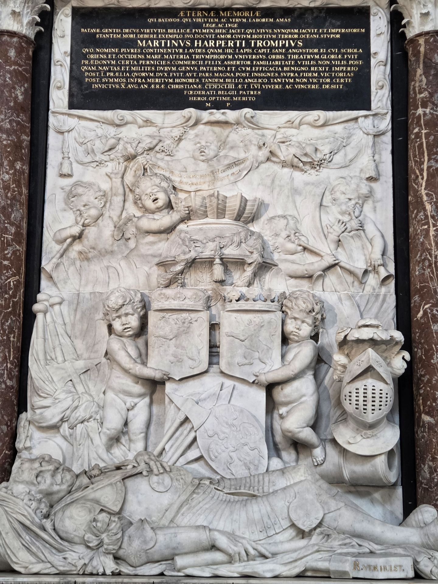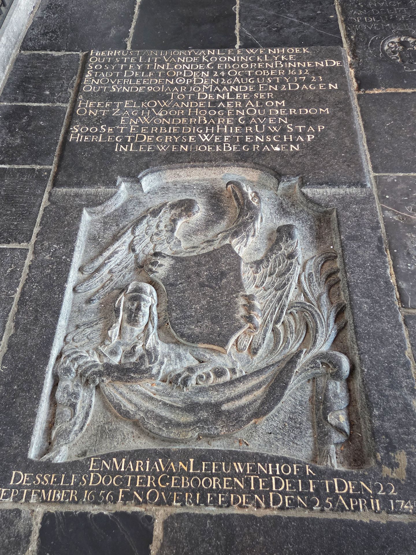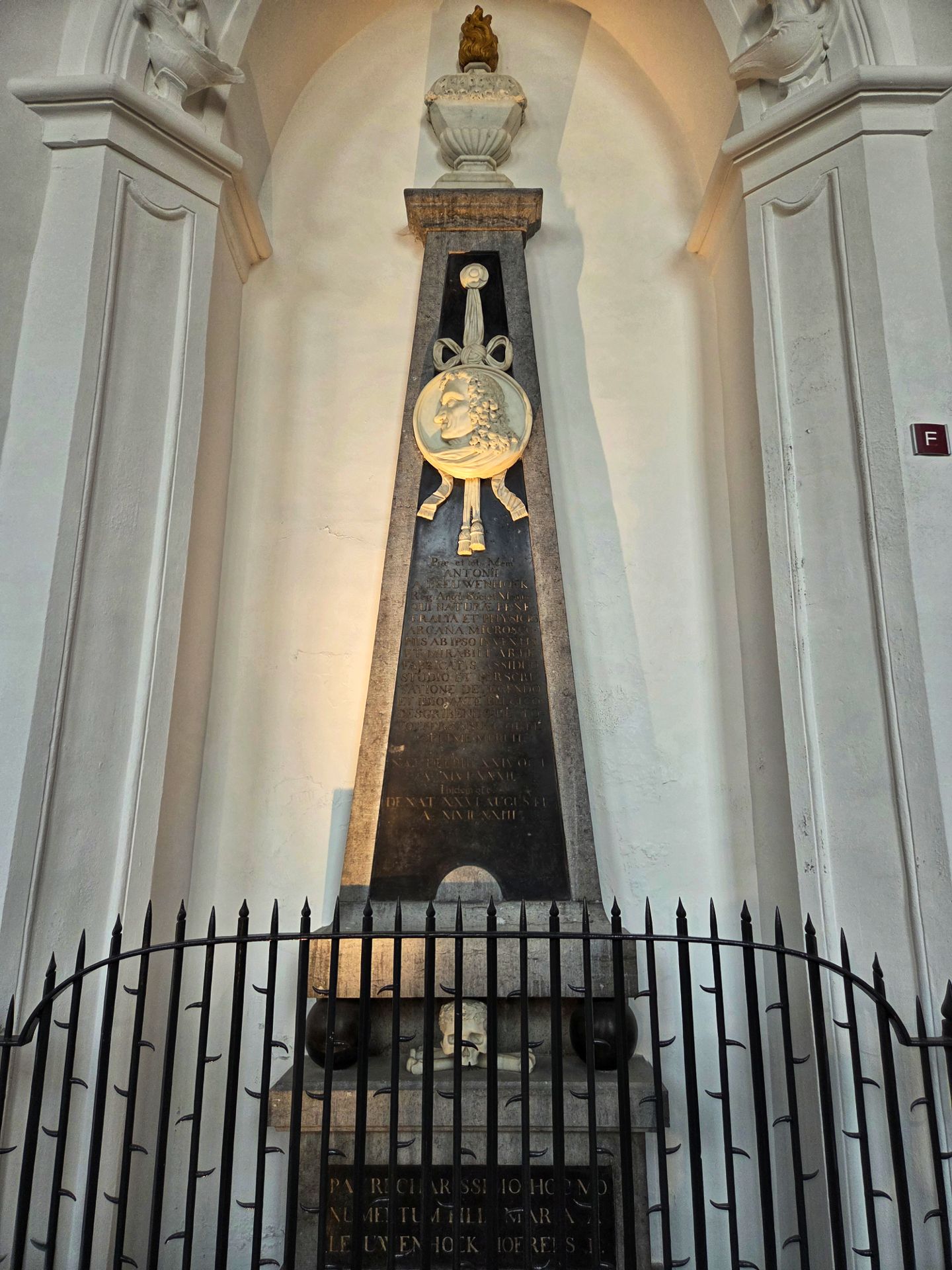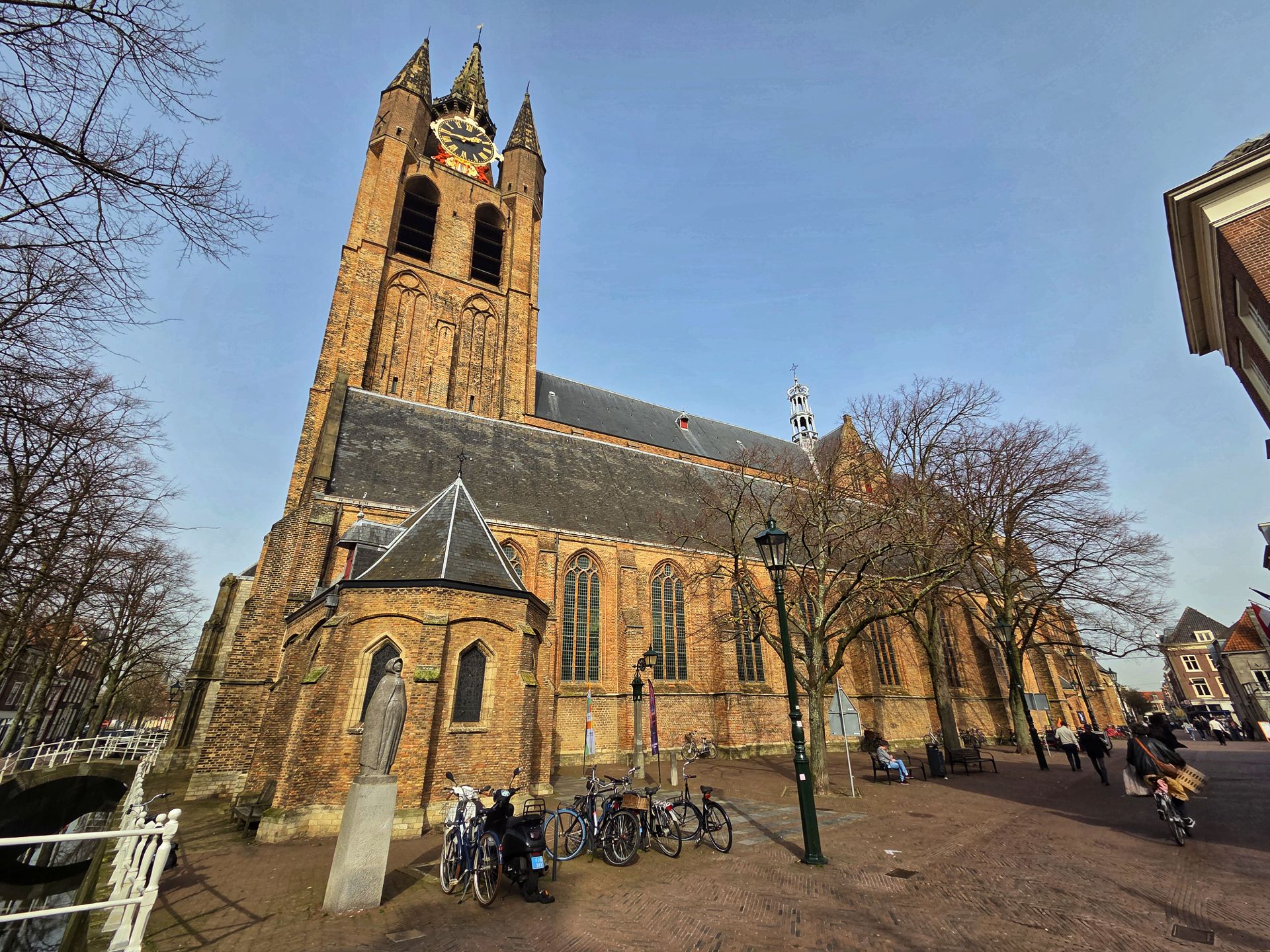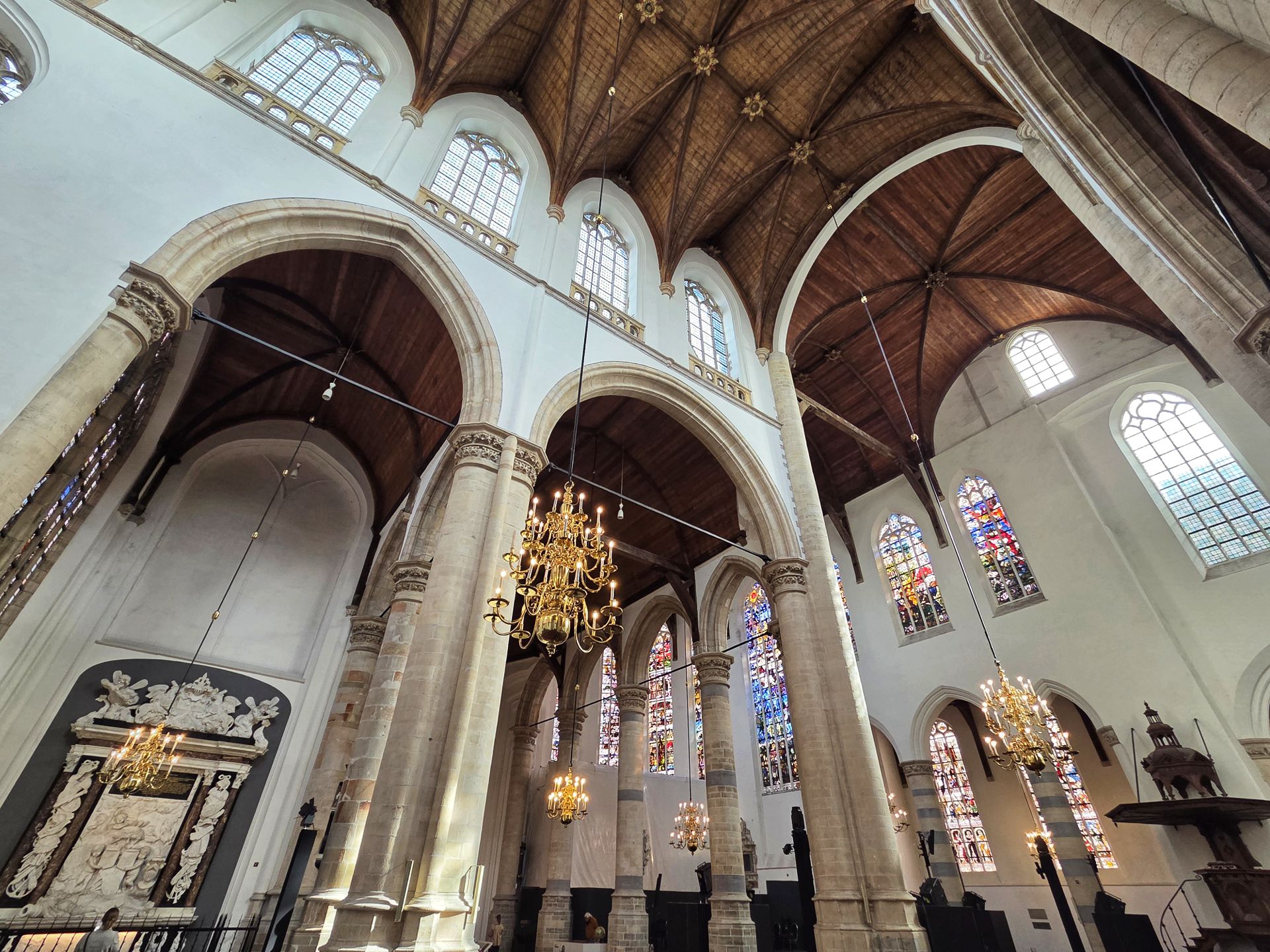 Tijdens de beeldenstorm is zo ongeveer het hele interieur gesloopt. Op de preekstoel na, die stamt uit 1548 en nog steeds te bewonderen is. En je ziet er graven van beroemdheden. Johannes Vermeer stierf onbekend en had een totaal onopvallende grafsteen, maar werd in 2007 geëerd met een grote gedenksteen. Piet Hein en Maarten Tromp kregen indrukwekkende praalgraven, en ook Anthonie van Leeuwenhoek is hier begraven.