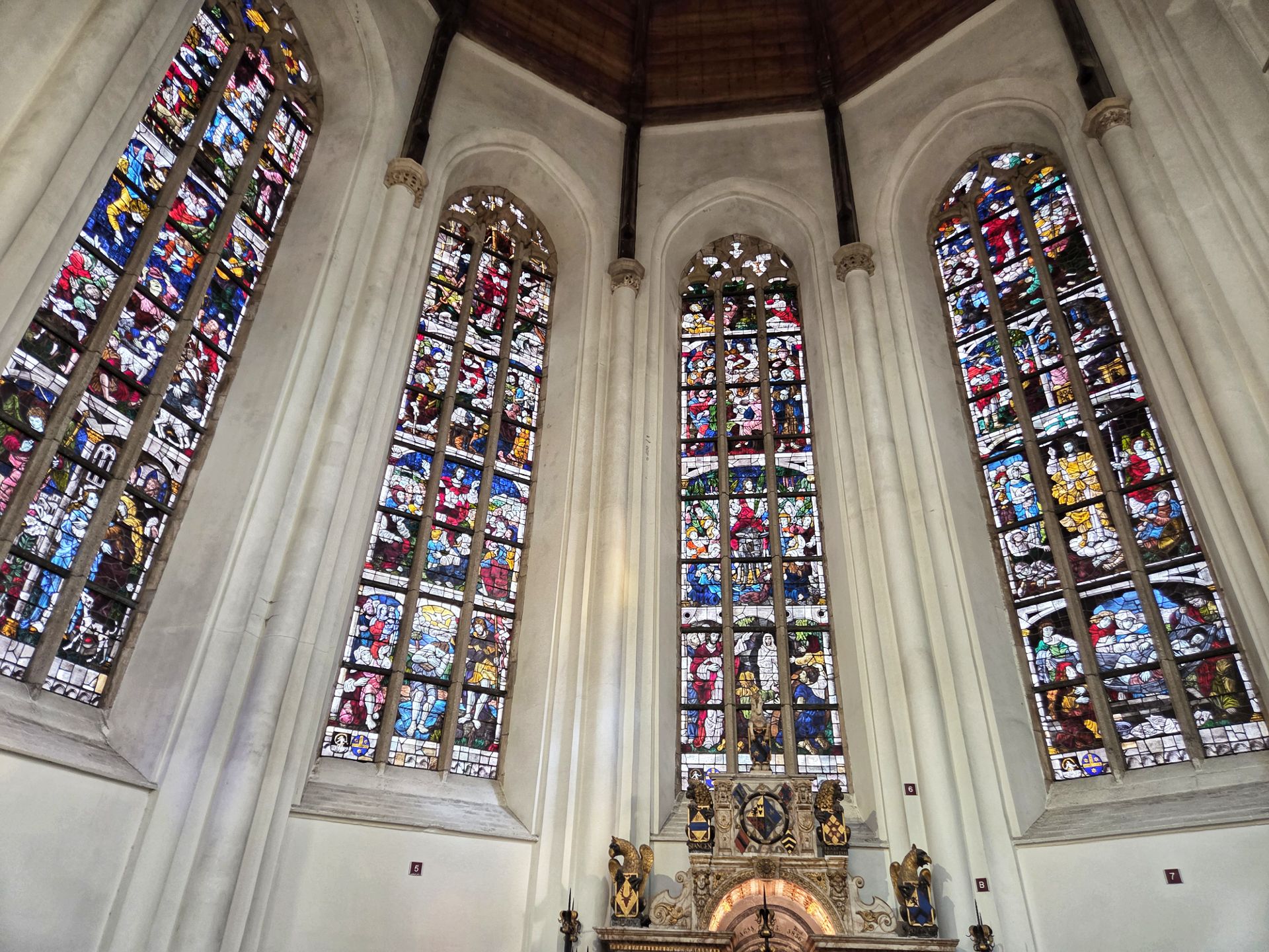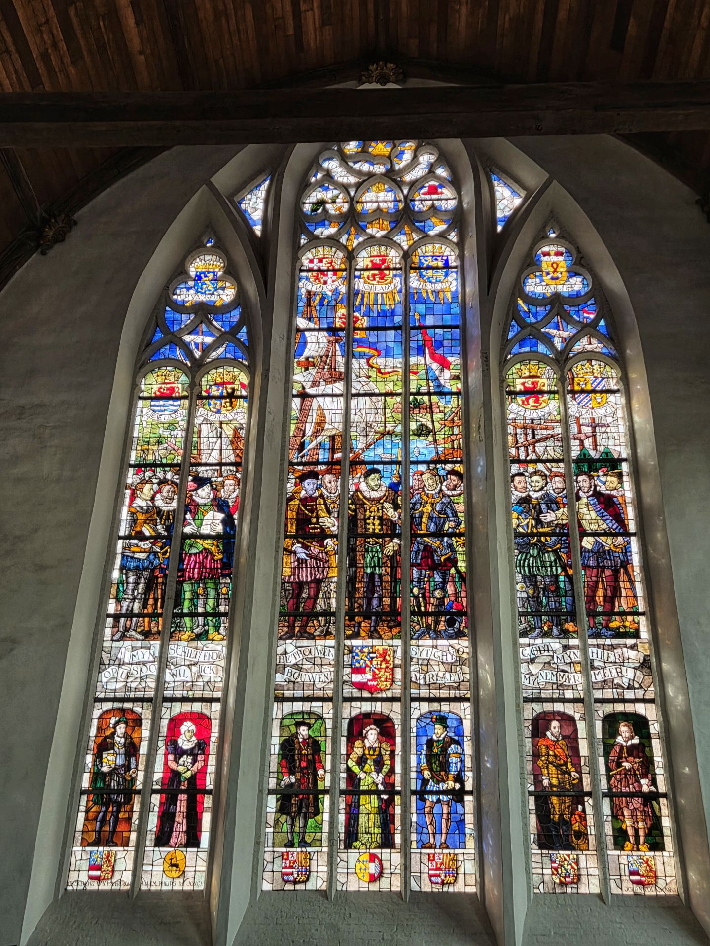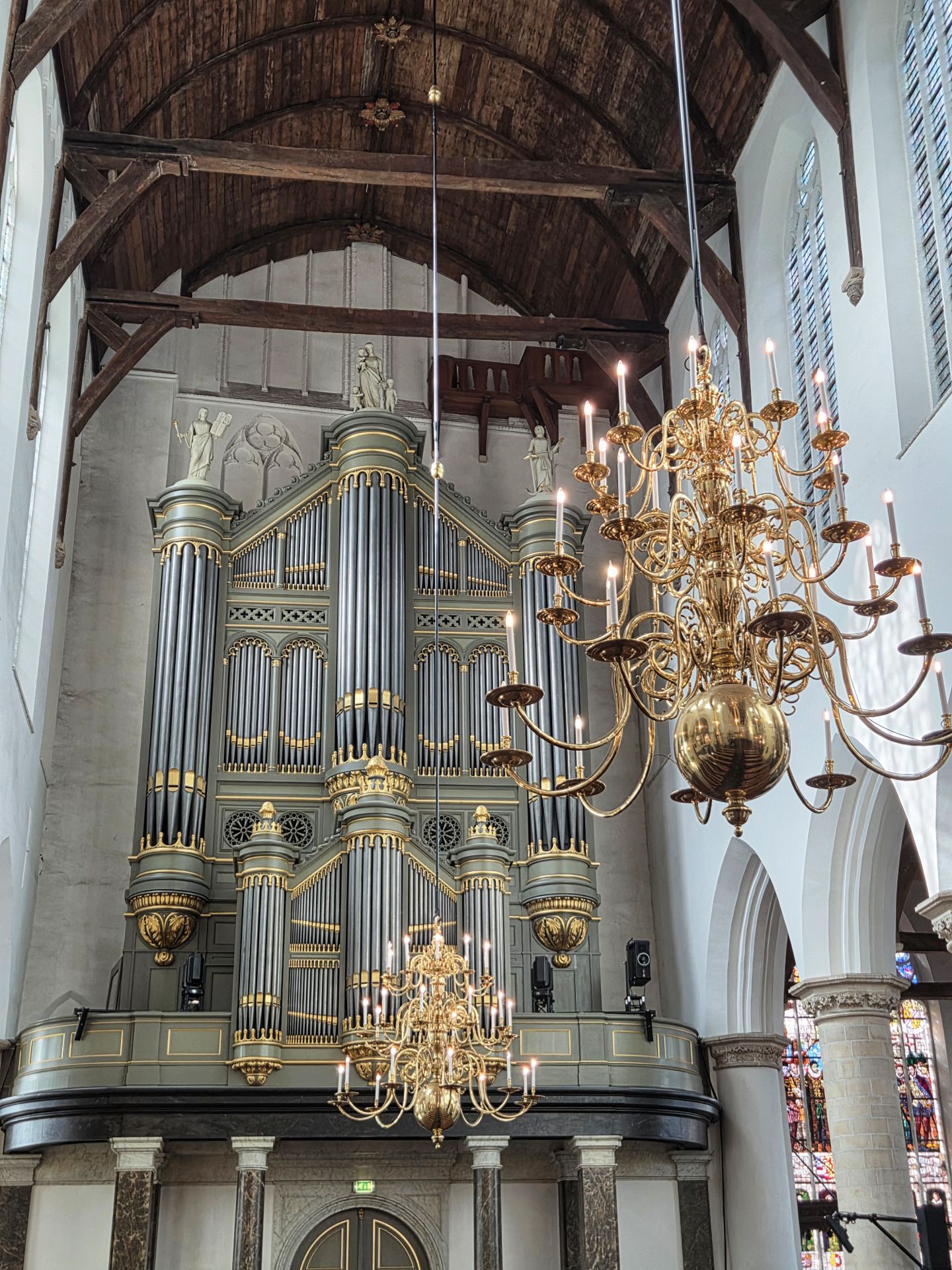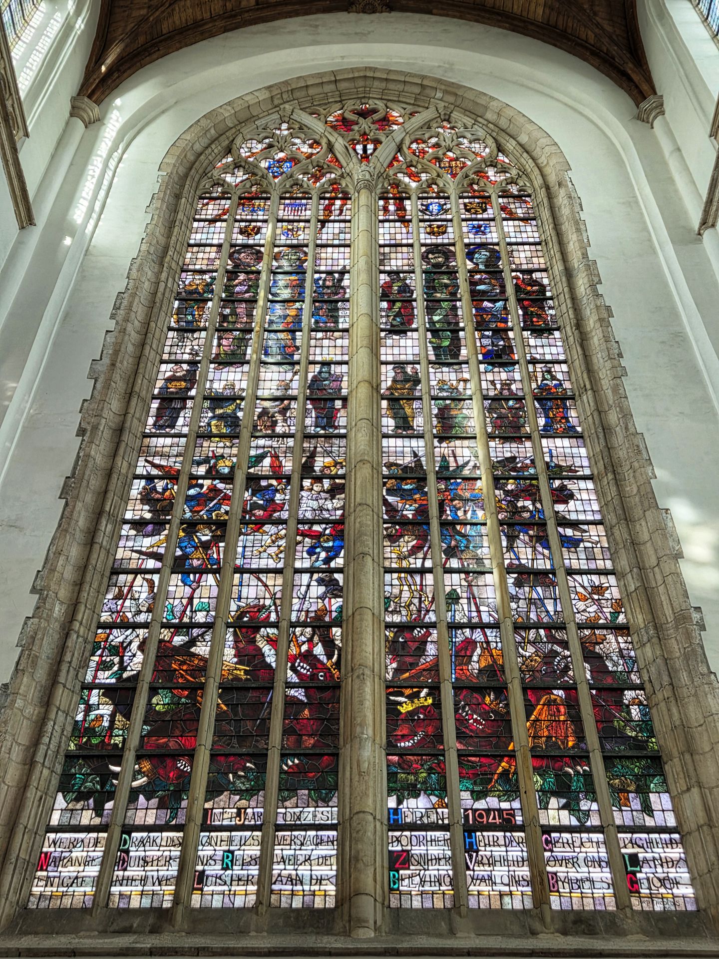In de 16e eeuw wilde men overstappen van baksteen op natuursteen, wat je nog ziet aan het dwarsschip. Door de Reformatie bleef het hierbij. En daarna kreeg de kerk heel wat te verduren. Eerst raakte het imposante gebouw beschadigd door een stadsbrand, later verloor het al zijn glas-in-loodramen bij de buskruitramp van 1654. Voor het herstel werd geld ingezameld, maar helaas kwamen er vooral gewone ramen voor terug of men metselde het gat gewoon dicht. Pas in de 20e eeuw kreeg de kerk weer glas-in-lood, gemaakt door Joep Nicolas.